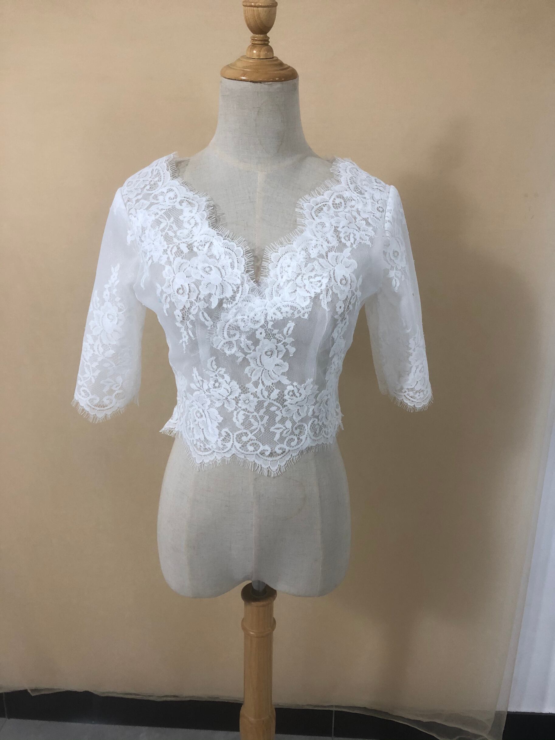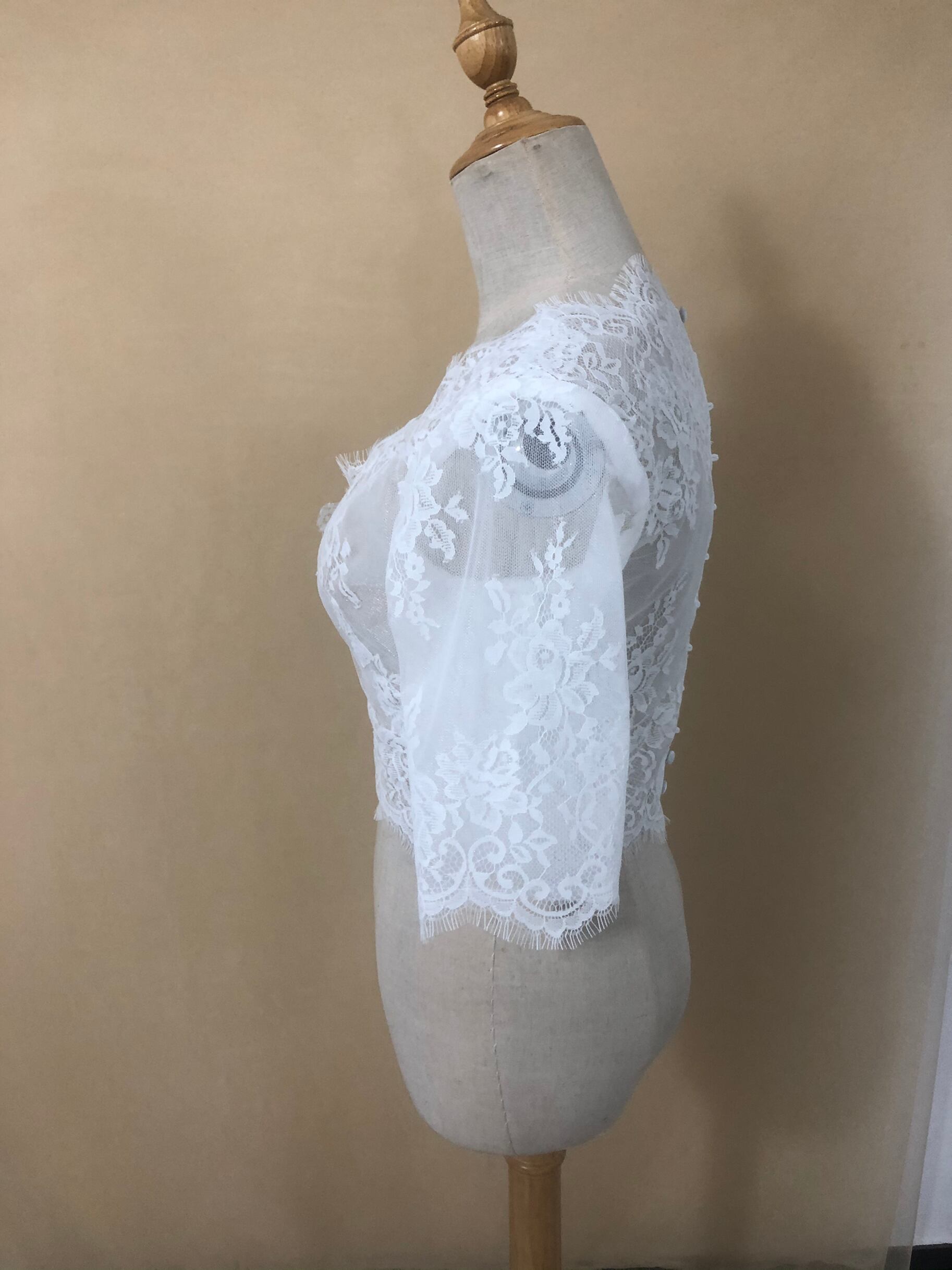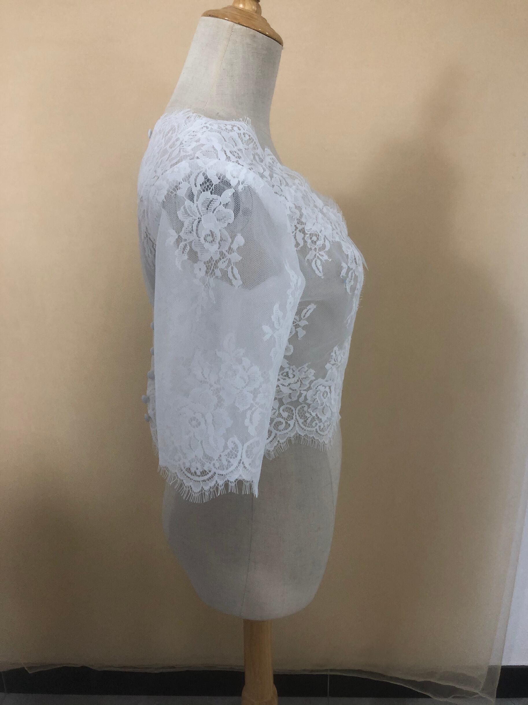 高品質! ウエディングドレス ボレロ トップスのみ スカラップレース 贅沢な小花総レース