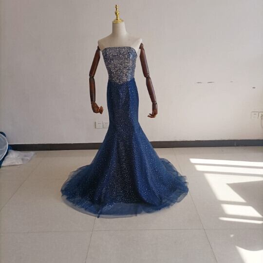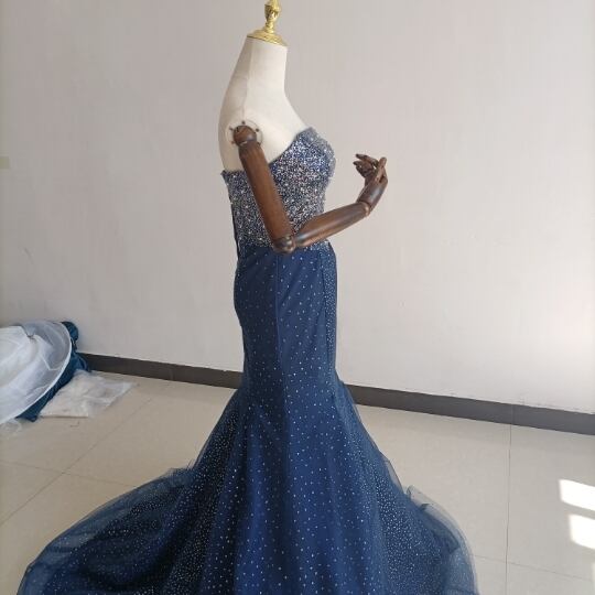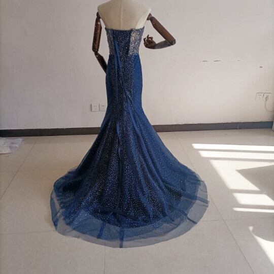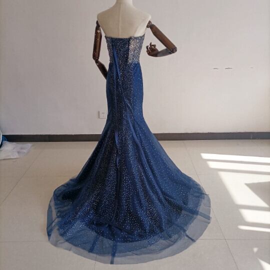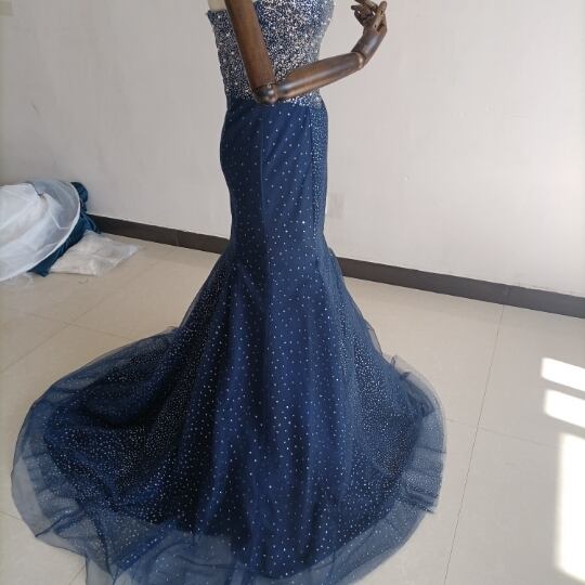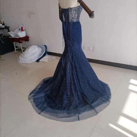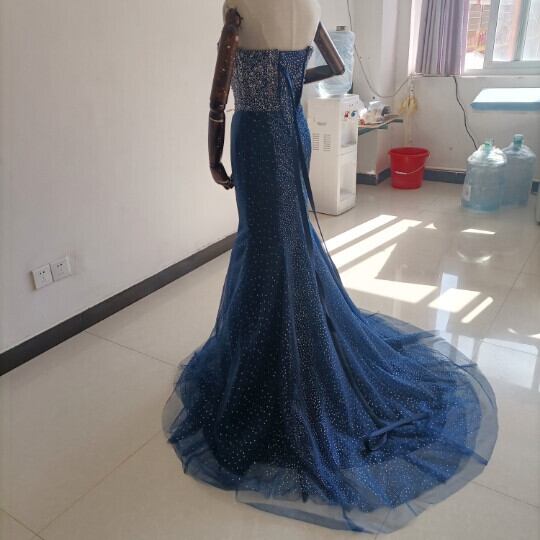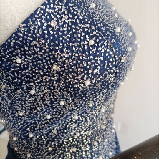 高品質! キラキラチュール パーティードレス 紺/ネイビー マー.