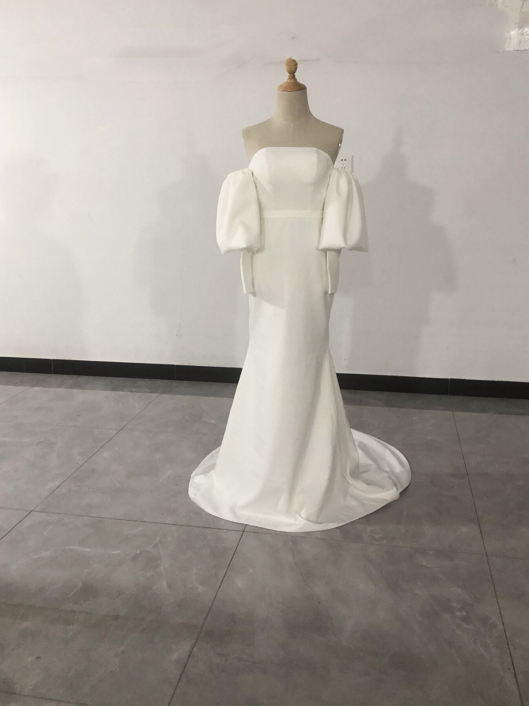 トレンドのオフショルダー ウェディングドレス ベアトップ お呼ばれ/二次会