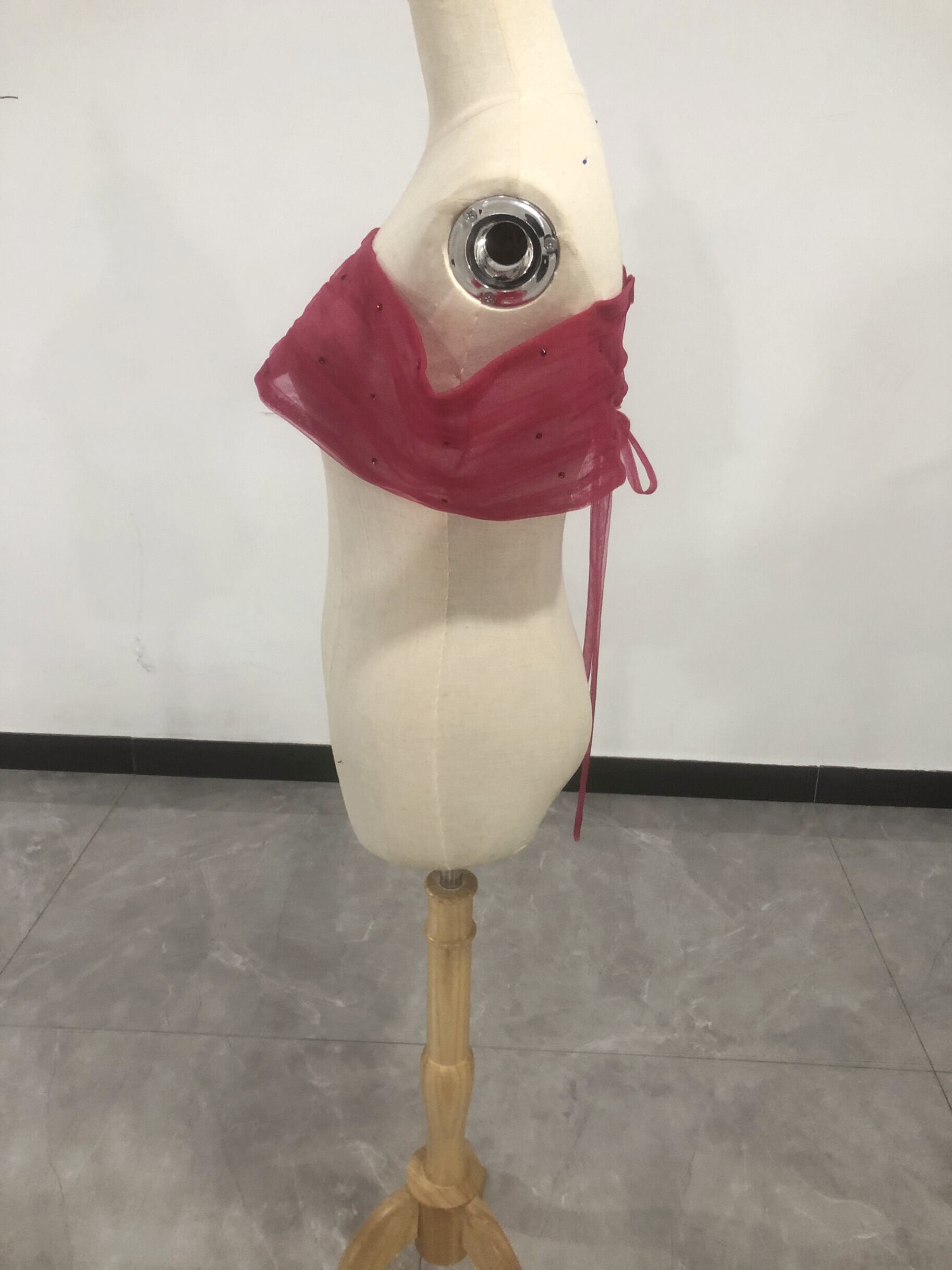 ポンチョ ワインレッドオフショルダー 編み上げ 色直し サイズ調整可能