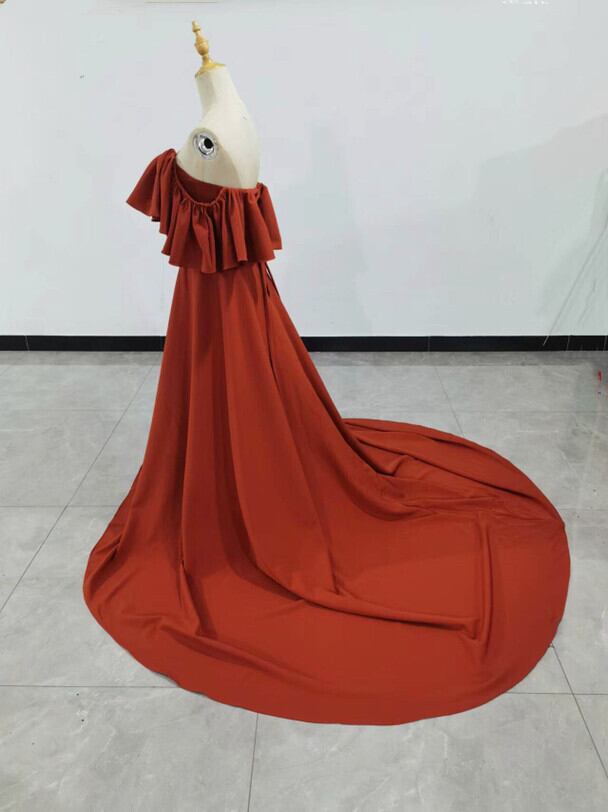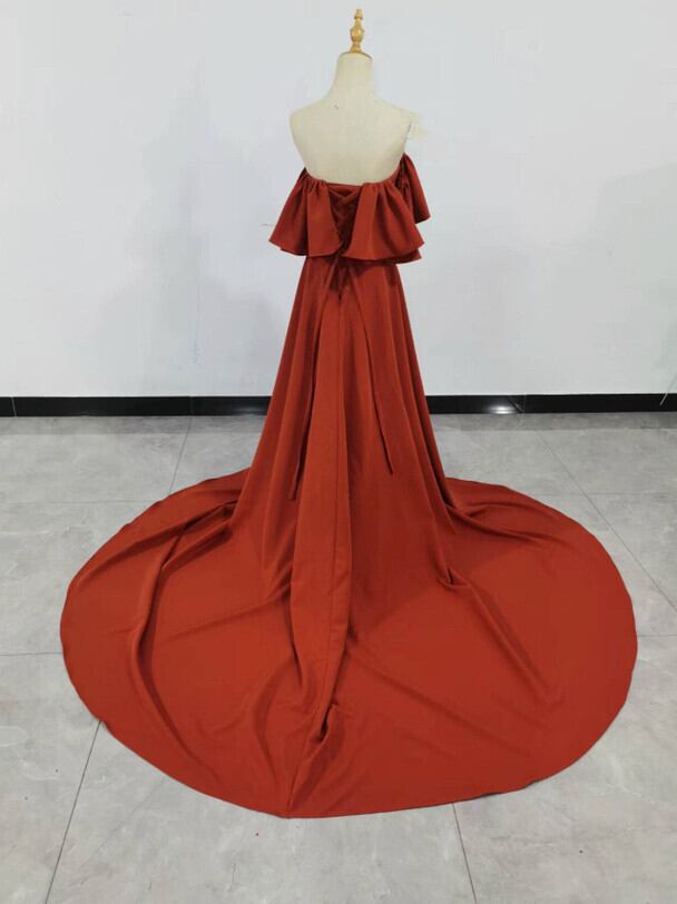 カラードレス テラコッタ色 オフショルダー ロングトレーン 前撮り2次会/挙式/花嫁