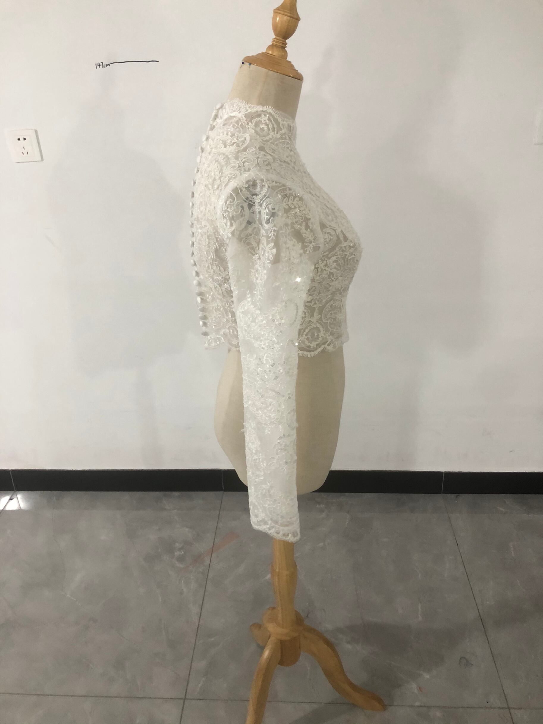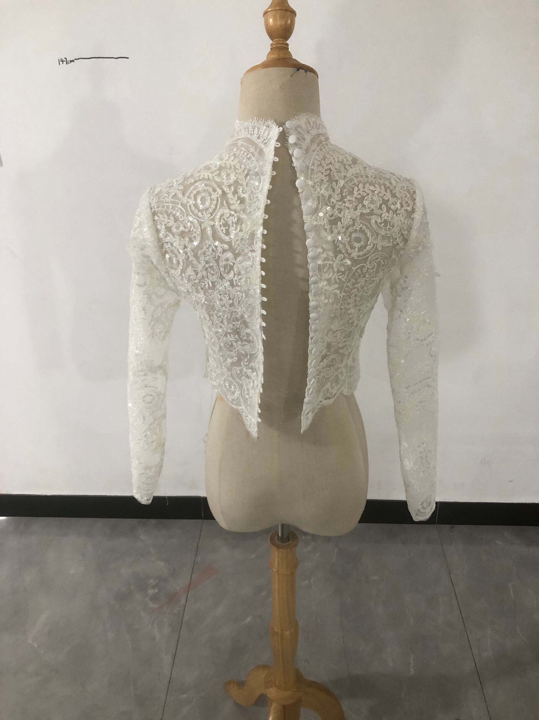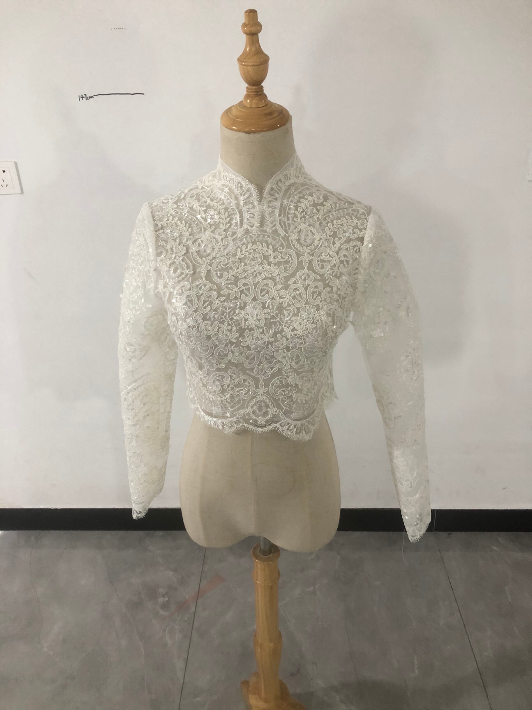 上品!長袖 オフショルダー ボレロ贅沢な小花総レース くるみボタン トップスのみ