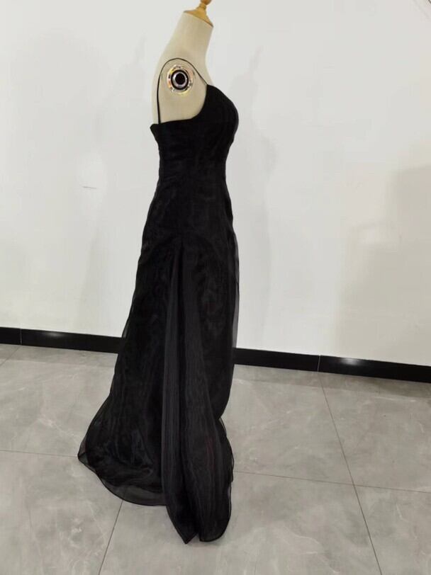 雅やか 黒色 カラードレス 背中見せ 短トレーン Vネック お呼ばれ 二次会