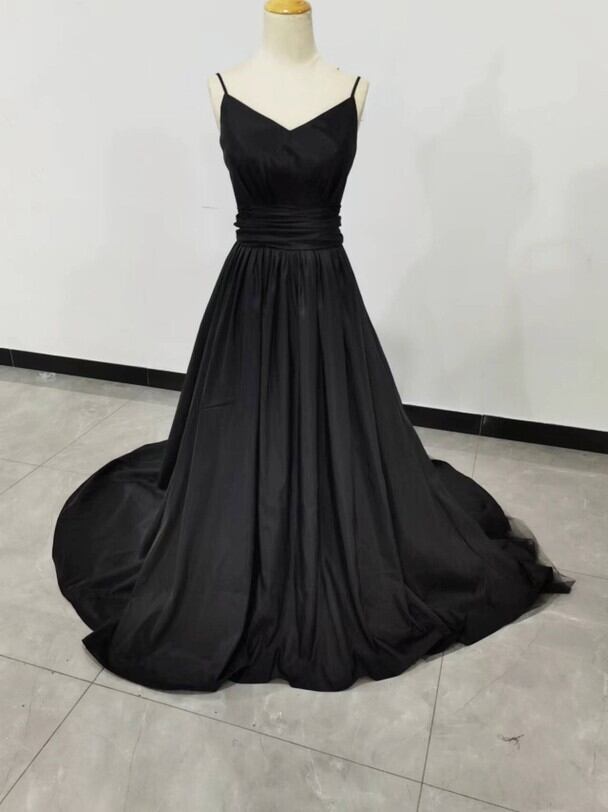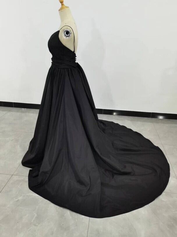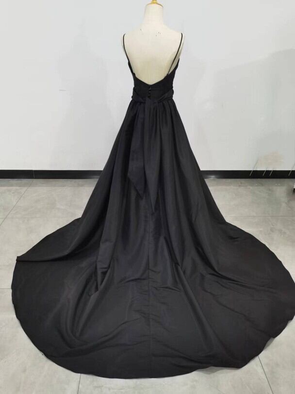 雅やか 黒色 カラードレス 背中見せ Vネック ロングトレーン お呼ばれ 二次会