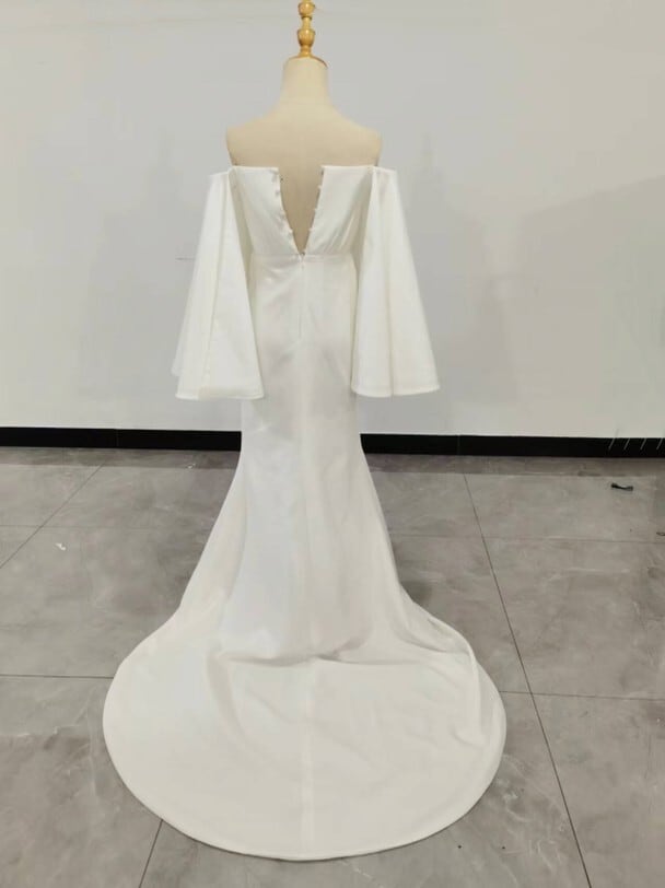 大人気上昇 ウエディングドレス ホワイト オフショルダー 高級イタリアサテン 2次会 花嫁