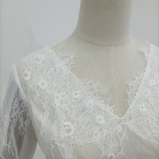 高品質! ウエディングドレス ボレロ トップスのみ スカラップレース 贅沢な小花総レース