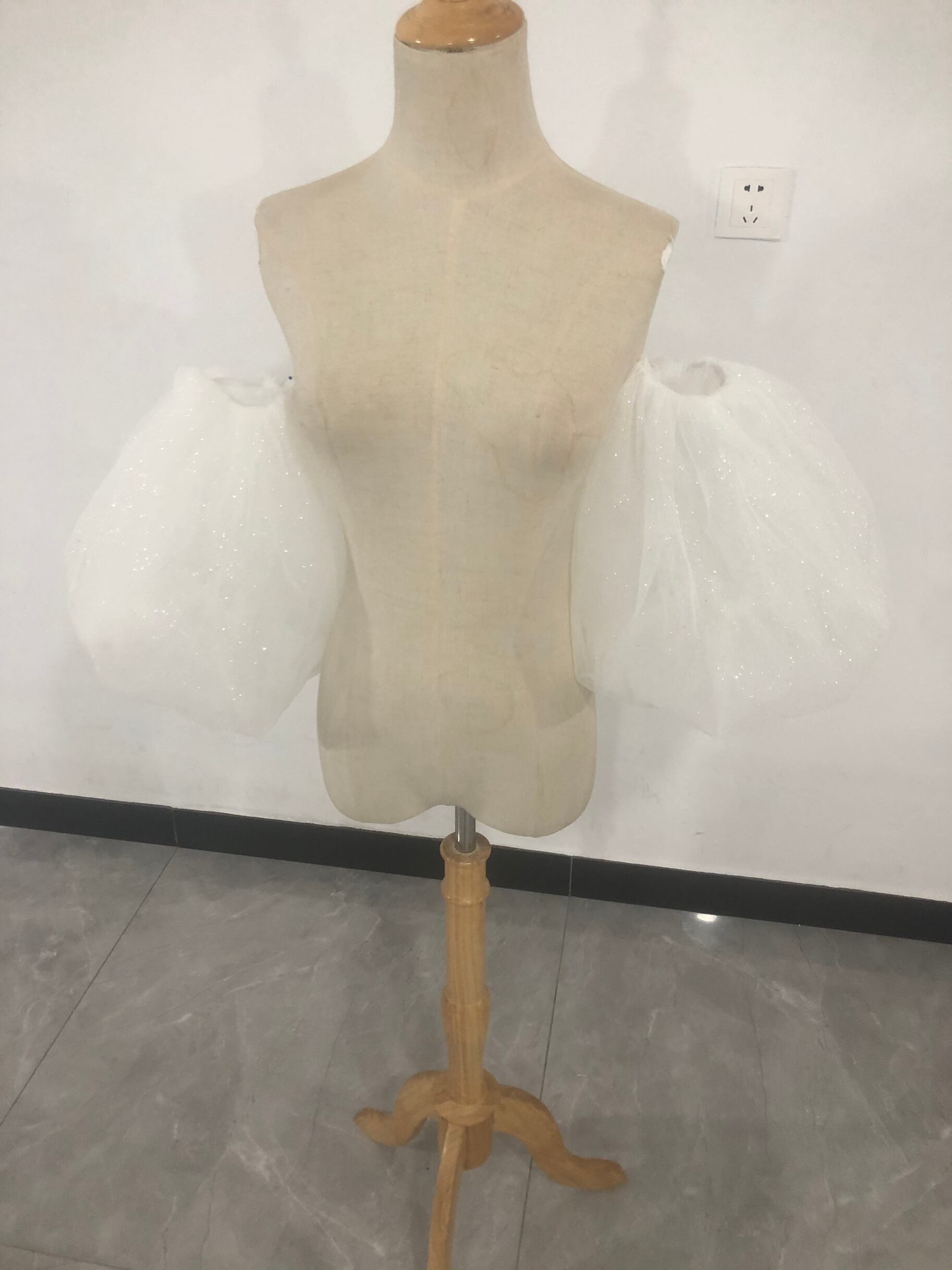 多層チュール 取り外し袖 ホワイト ショルダーの付け袖 三角形パフスリーブ ドレスアレンジ ウエディング お色直し