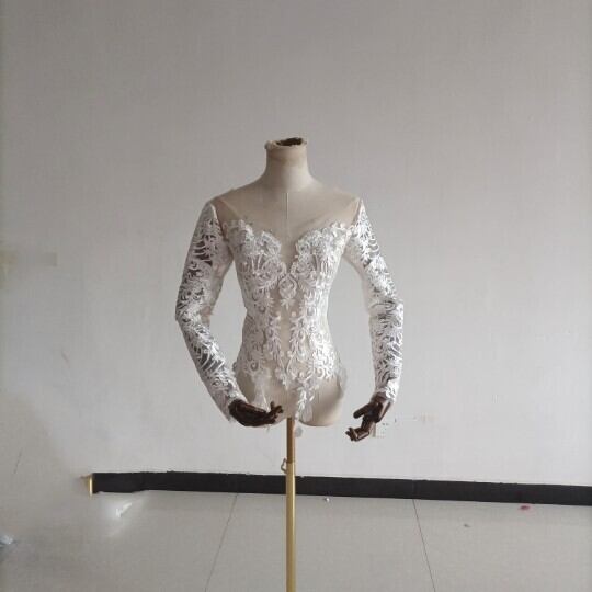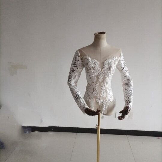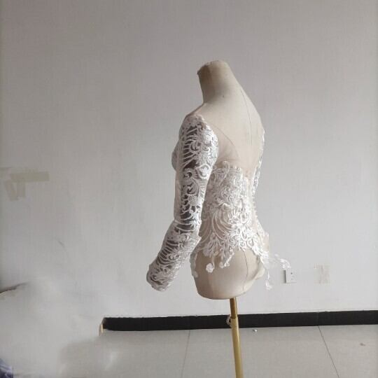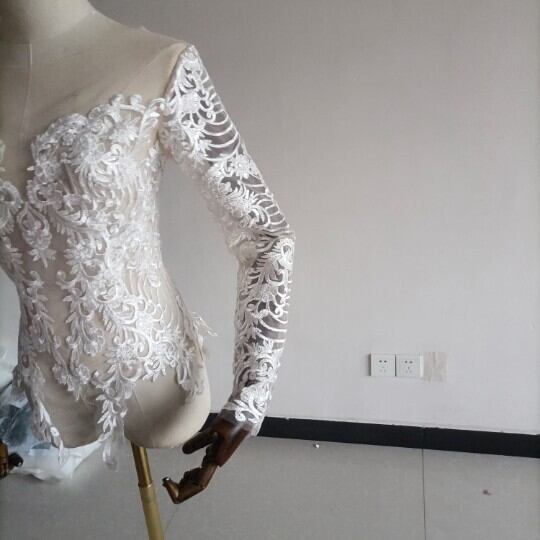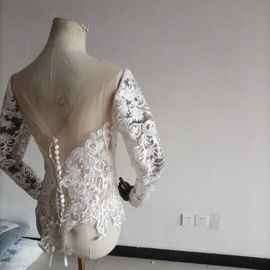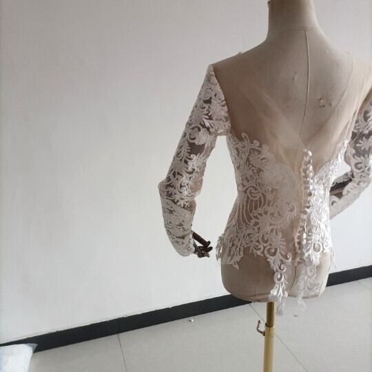 高品質! ウエディングドレス中のボレロ 高級レース 背中見せ 長袖 結婚式 二次会 前撮り