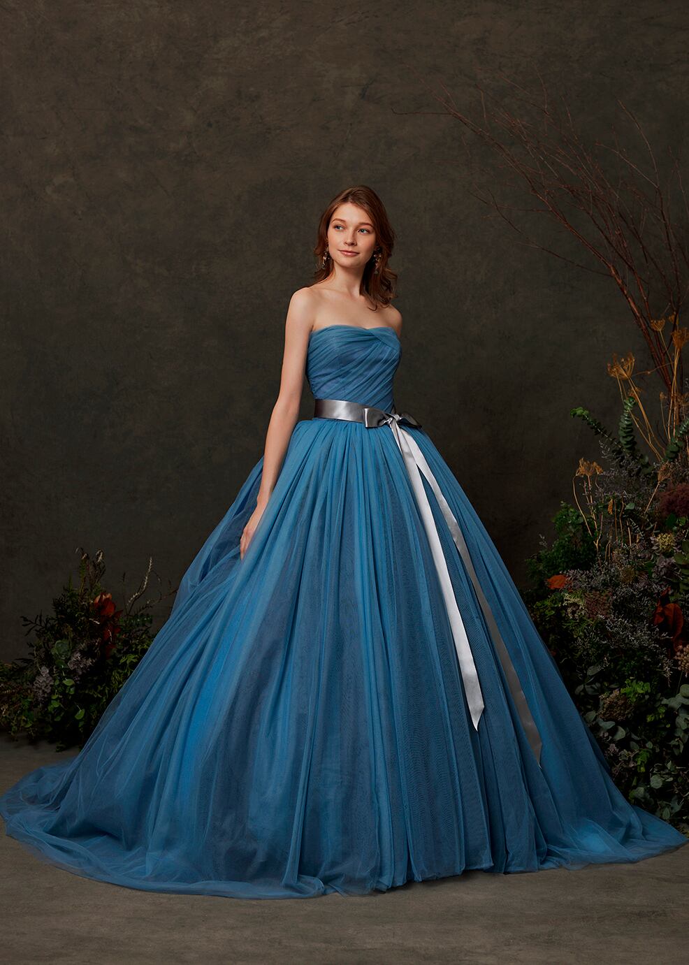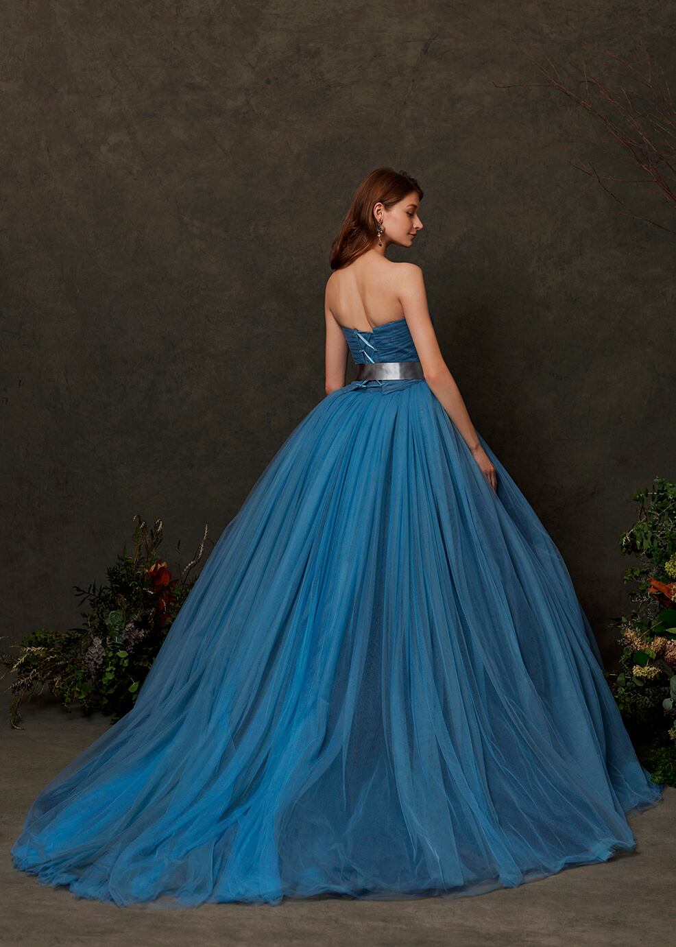 ブルーグレーカラードレス 奥行きある美しさがたまらないプリンセスラインドレス ふんわりチュールドレス イベントドレス