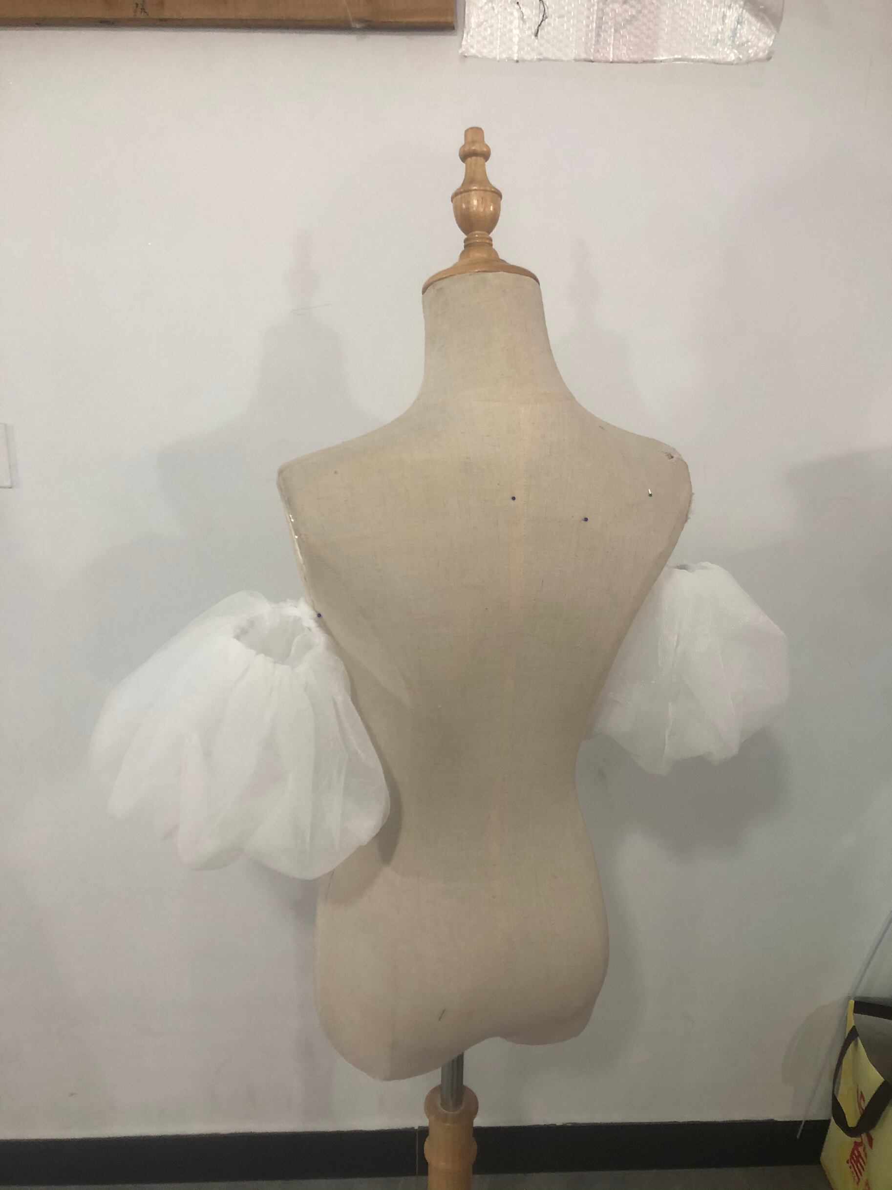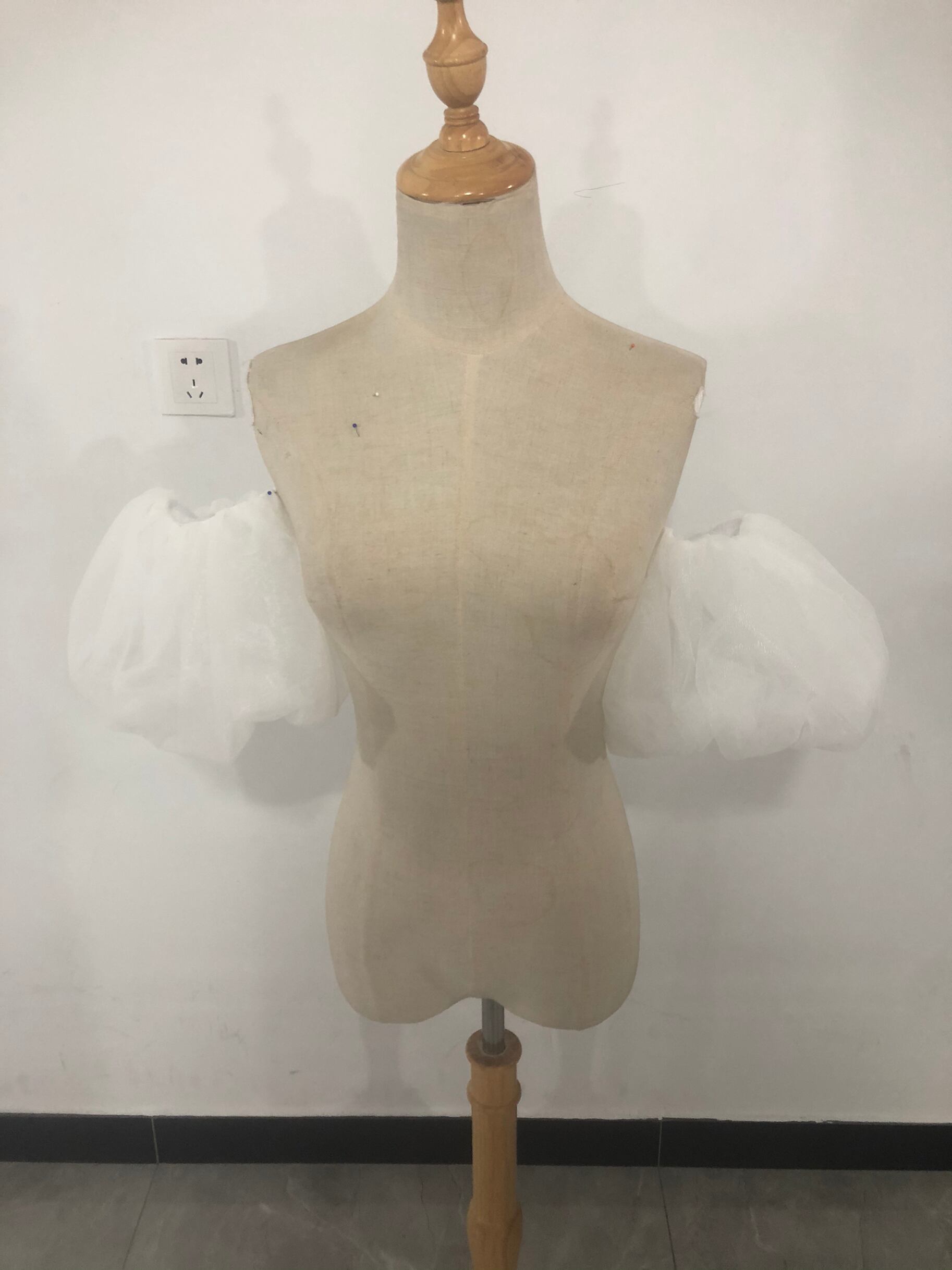 高級サテン 取り外し袖 ホワイト ショルダーの付け袖 パフスリーブ オーダー可能 二の腕を隠せるお袖