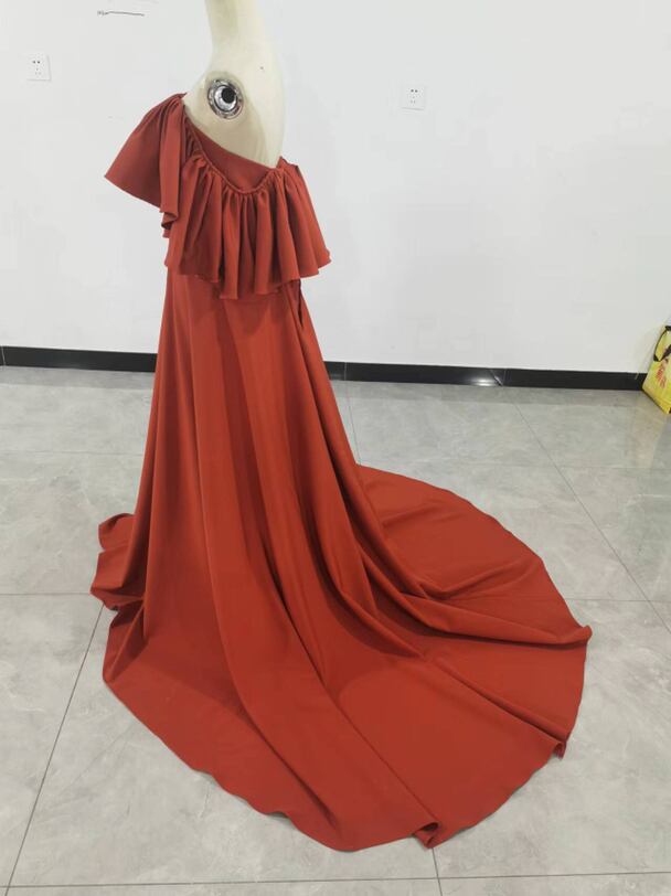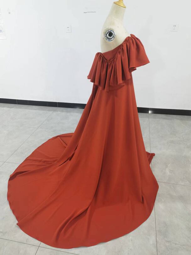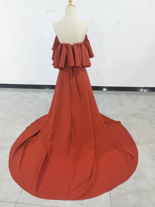 カラードレス テラコッタ色 オフショルダー ロングトレーン 前撮り
