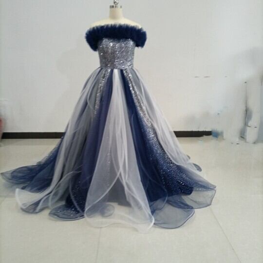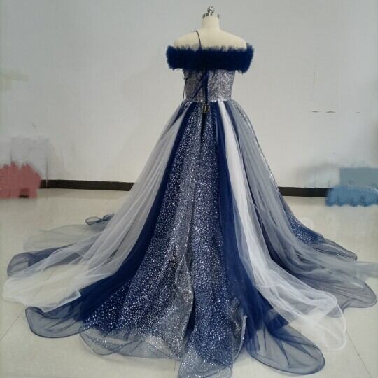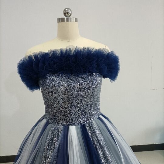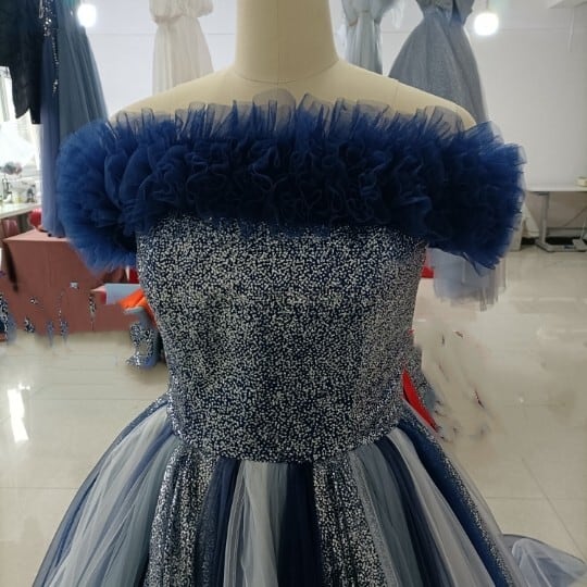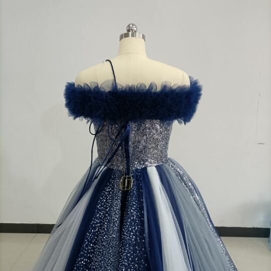 青 ブルーキラキラチュールカラードレス 可愛い 編み上げ プリンセスドレス オーバードレス+取り外しオフショルダー取り外