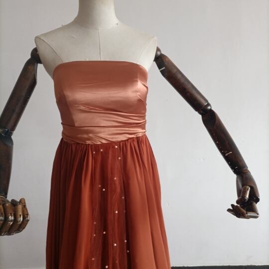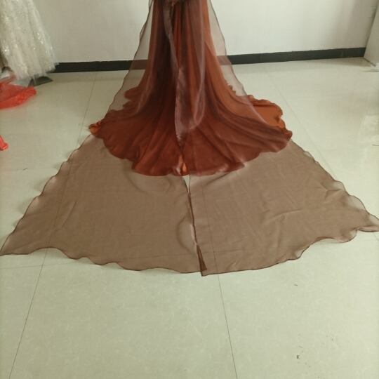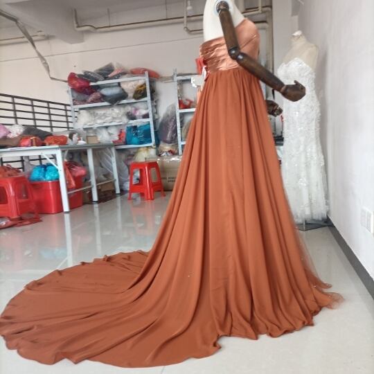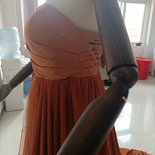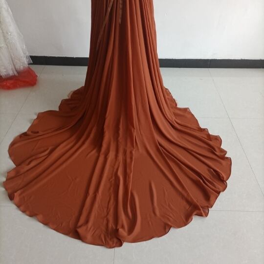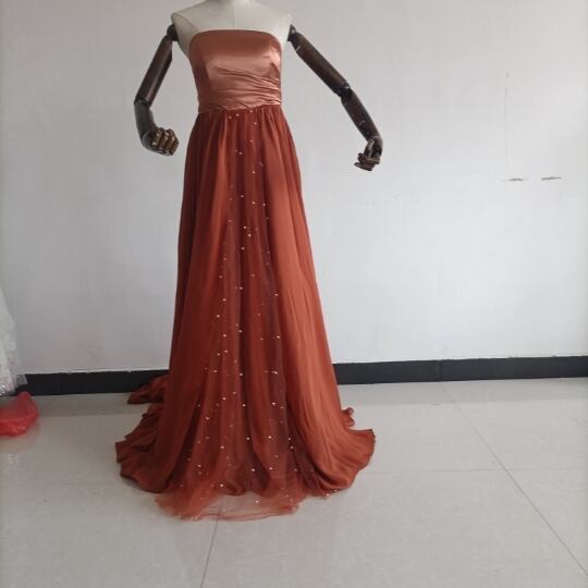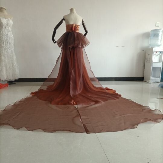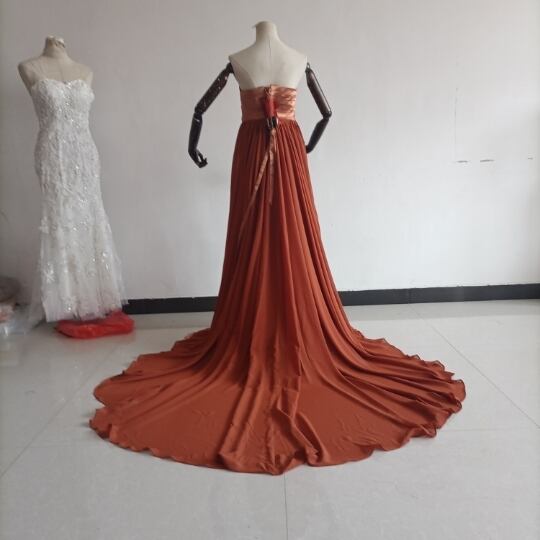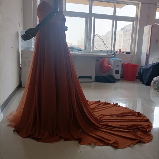 結婚式ドレス テラコッタ色 ビーズ/パール カラードレス華やかなトレーン トレーン オーダーメイド可能