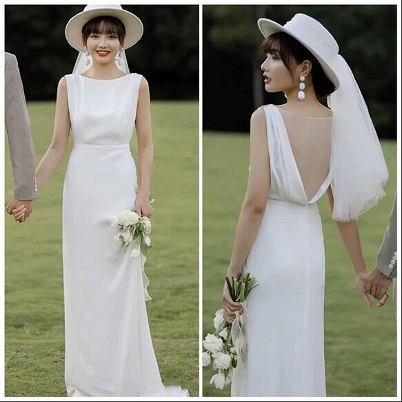 サテン ノースリーブ ソフトマーメイドウエディングドレス