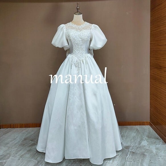 レトロパフスリーブ手作りビーズクラシカルプリンセスラインウェディングドレス結婚式 二次会ドレス