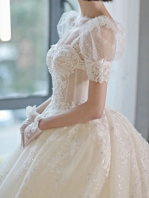 ★ドレスは全て手作りをされています。大きいドレスの場合は1000個以上の待ち針を使われています。毎回も丁寧に検品しておりますが、やはりたまに待ち針が残す問題が発生します。金属検査機を使っていますが、ドレスが大きすぎて、どうしても残っているケースがございます。ドレスが届きましたら、最初に気を付けてご着用をお願いします。