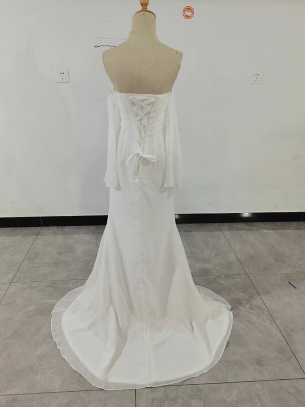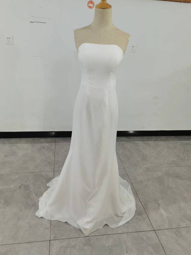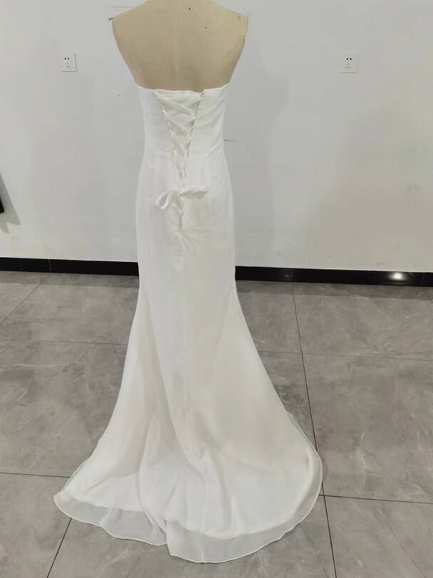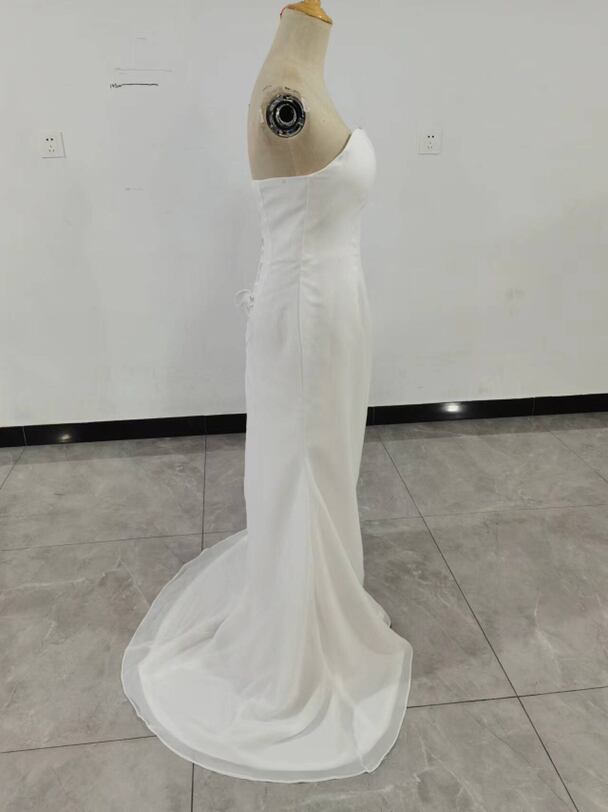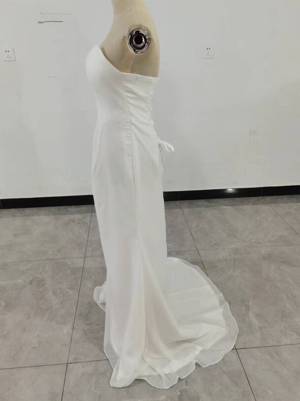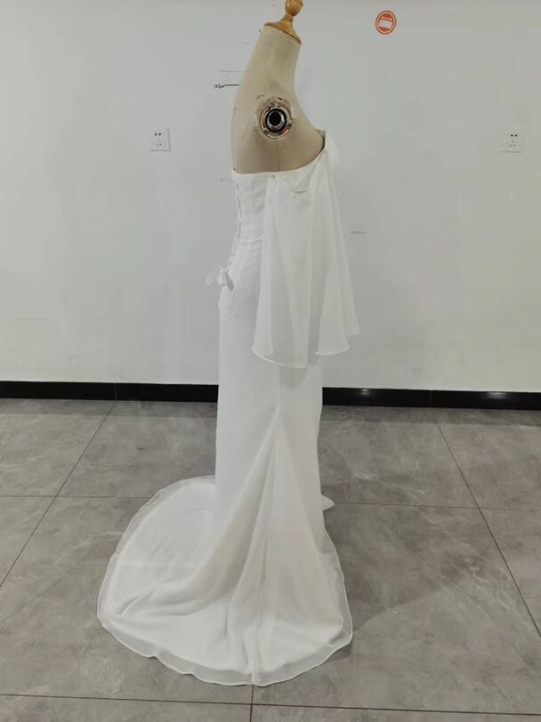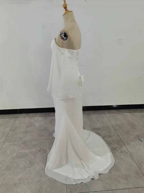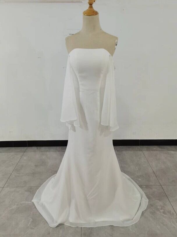 人気上昇!ホワイト ウエディングドレス ベアトップ 取り外し袖  二次会/2次会/挙式/前撮り