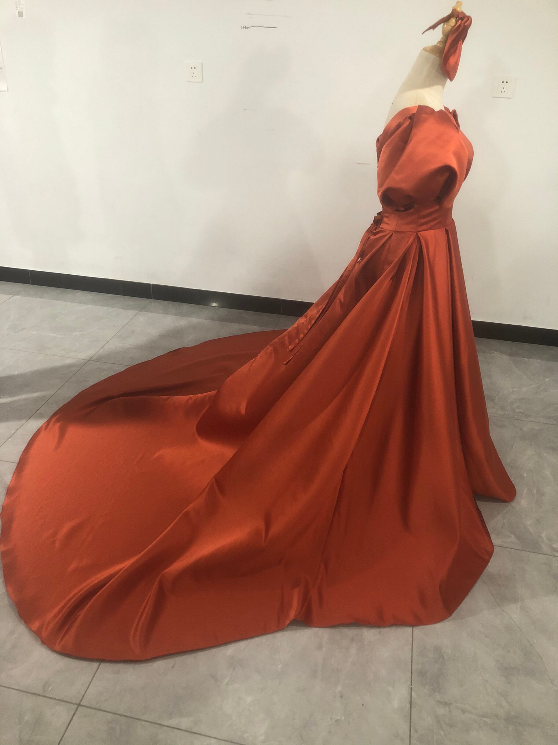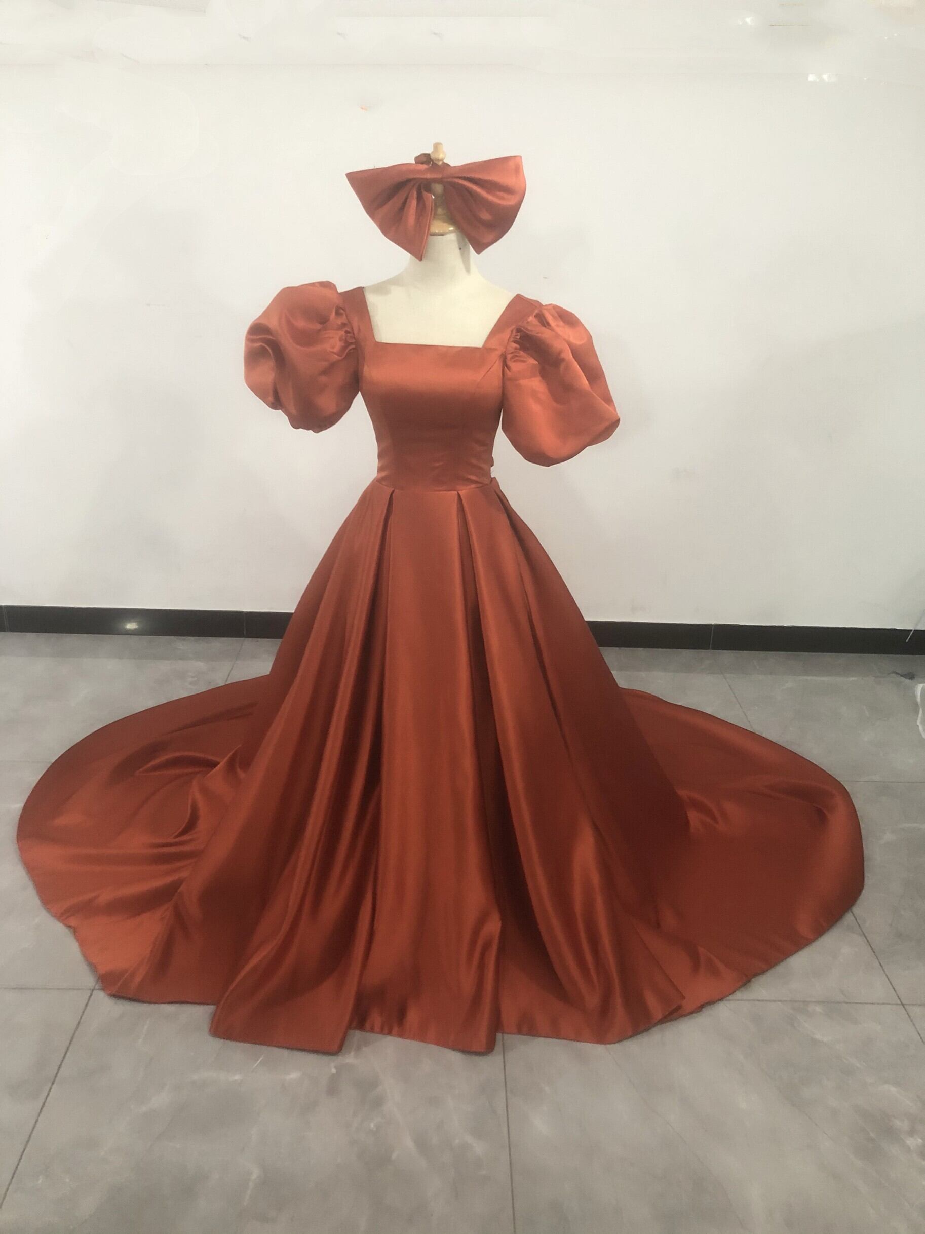 送料無料!大好評中!テラコッタ色 カラードレス 編み上げ 華やかなトレーン プリンセスライン /結婚式披露