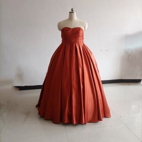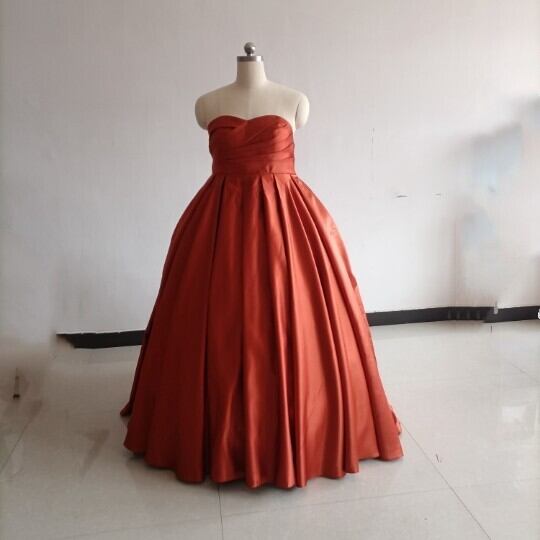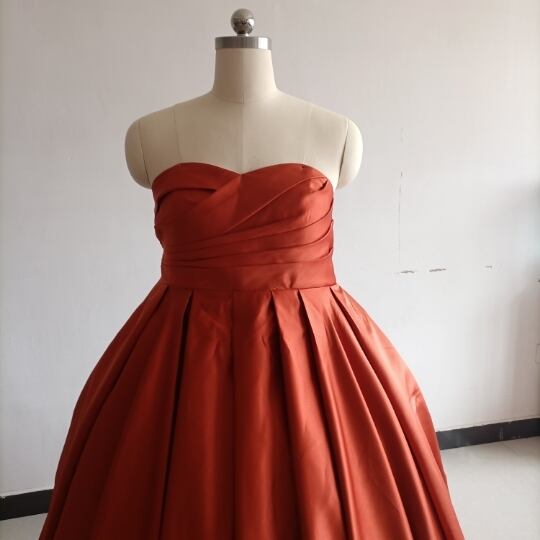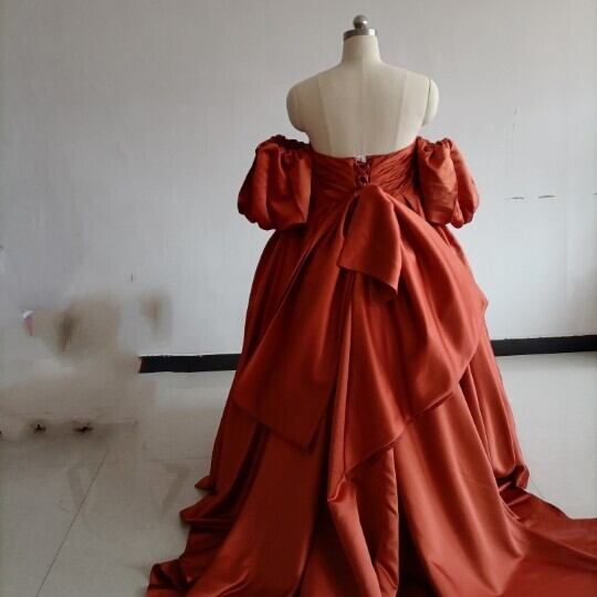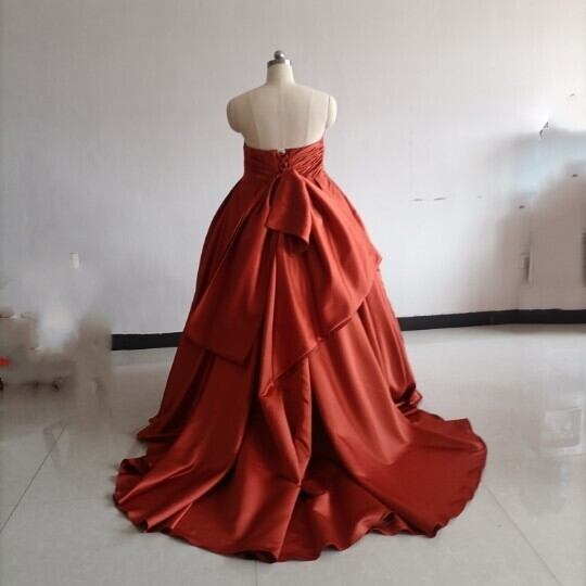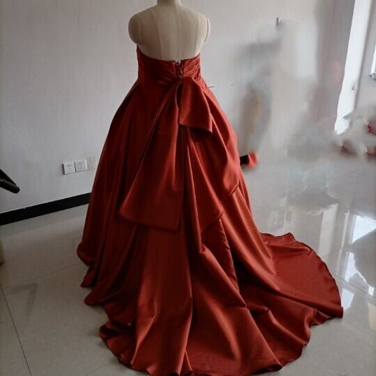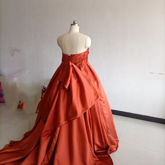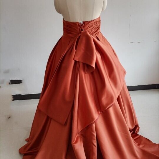 送料無料!人気上昇!パーティードレス テラコッタ色 テラコッタ ベアトップ 華やかなトレーン/結婚式/披露宴