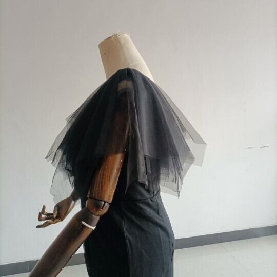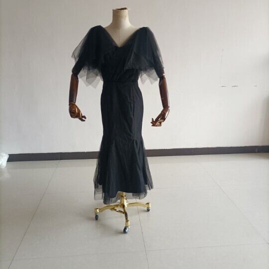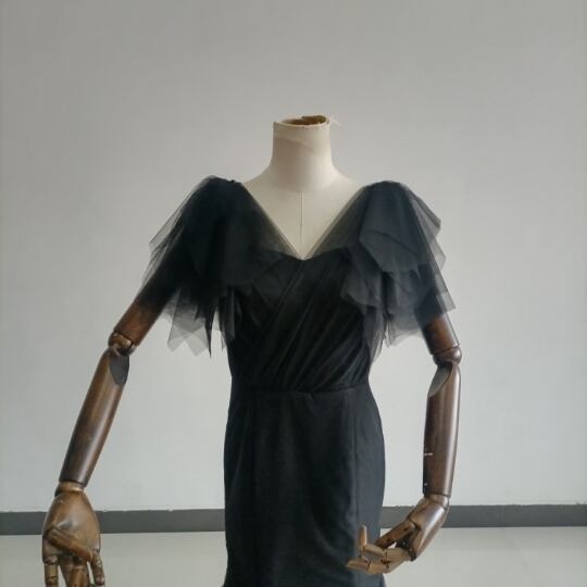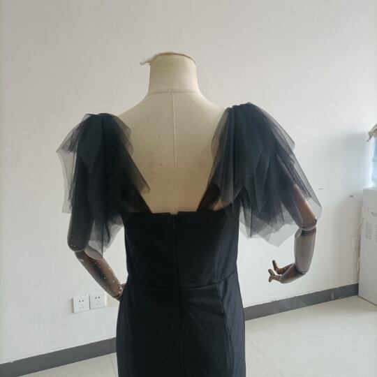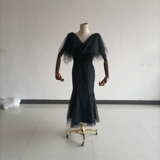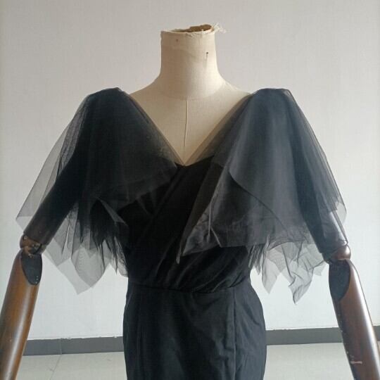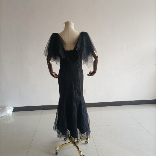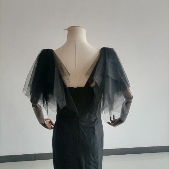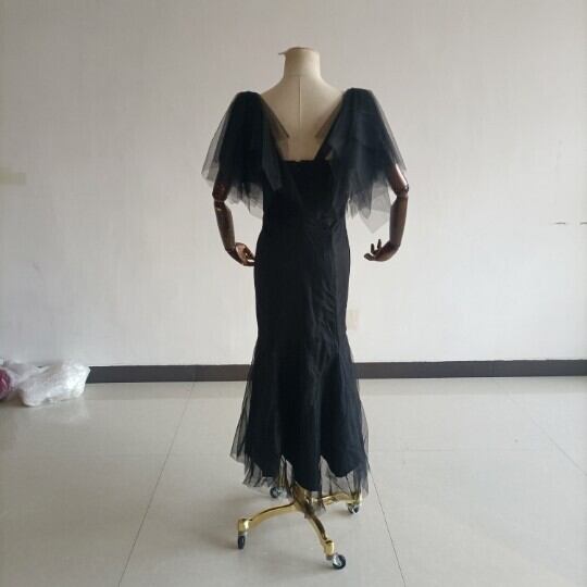送料無料!黒いドレス ソフトチュール ベアトップ スリット トレーン 美品! イブニングドレス