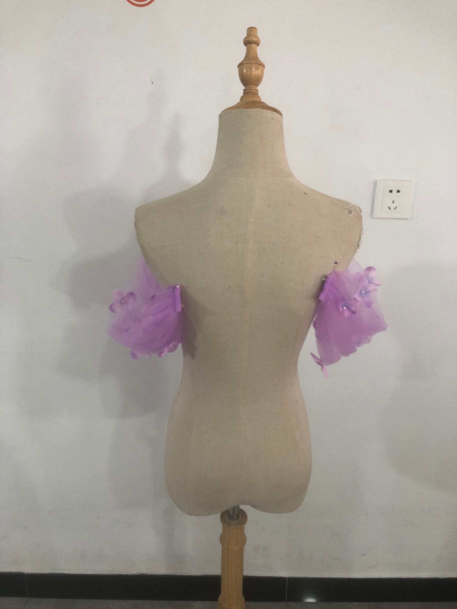 送料無料!大人気上昇 花モチーフ 取り外し袖 ブルー ショルダーの付け袖 パフスリーブ オーダー可能