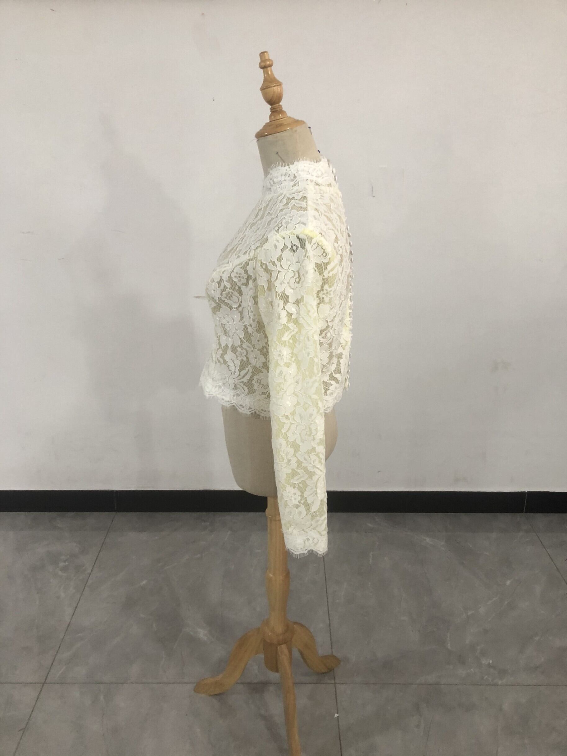 送料無料!ウエディングドレス ボレロ ハイネック 3D立体レース刺繍 花嫁/ウェディングドレス/ブライズメイド/結婚式/