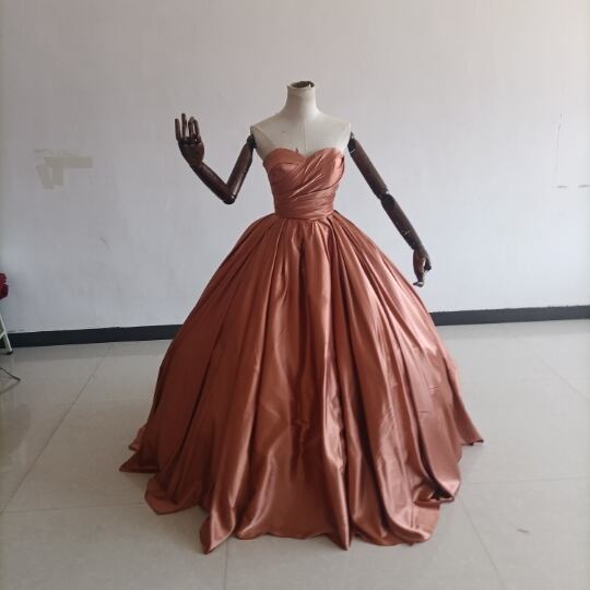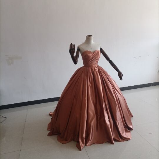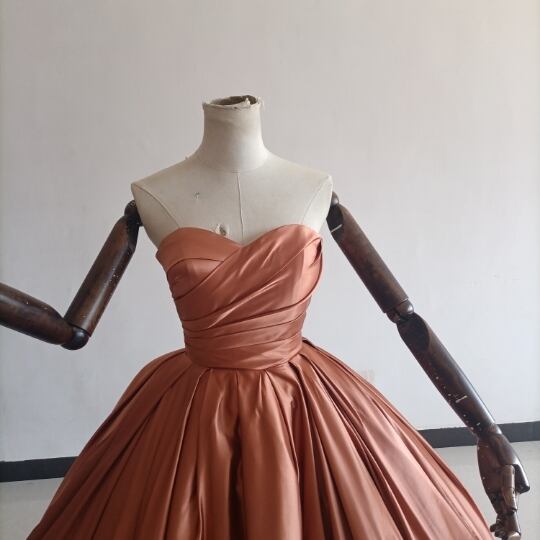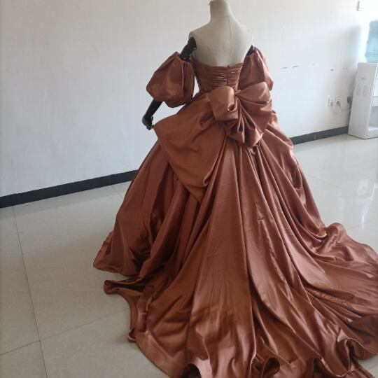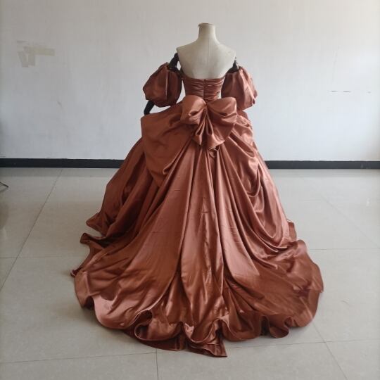 送料無料!人気上昇!パーティードレス テラコッタ色 テラコッタ ベアトップ 華やかなトレーン/結婚式/披露宴