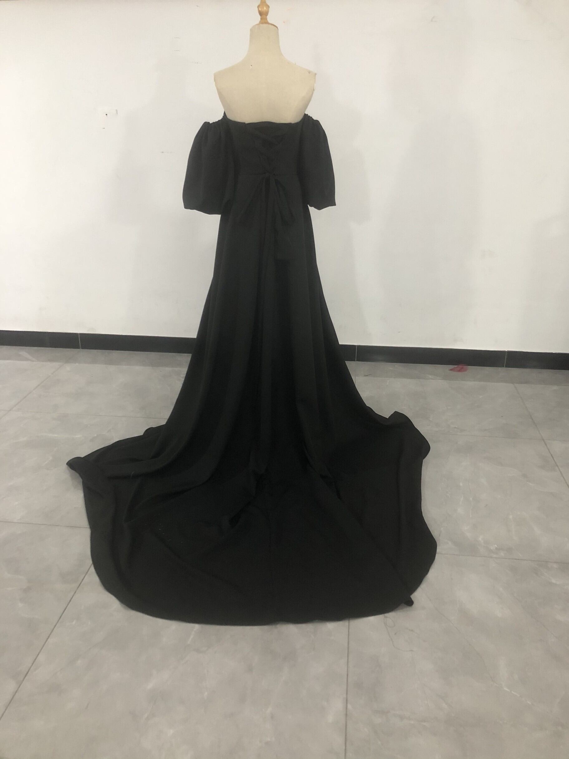 送料無料!人気上昇 オフショル 黑 パーティードレス 二次会 前撮り 挙式 パフスリーブ マット生地