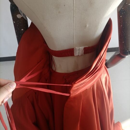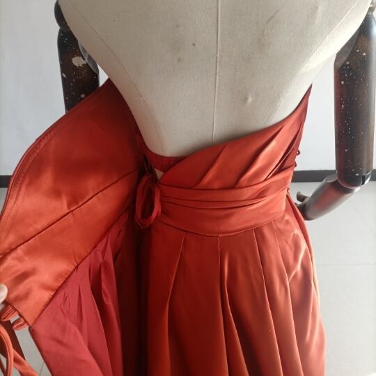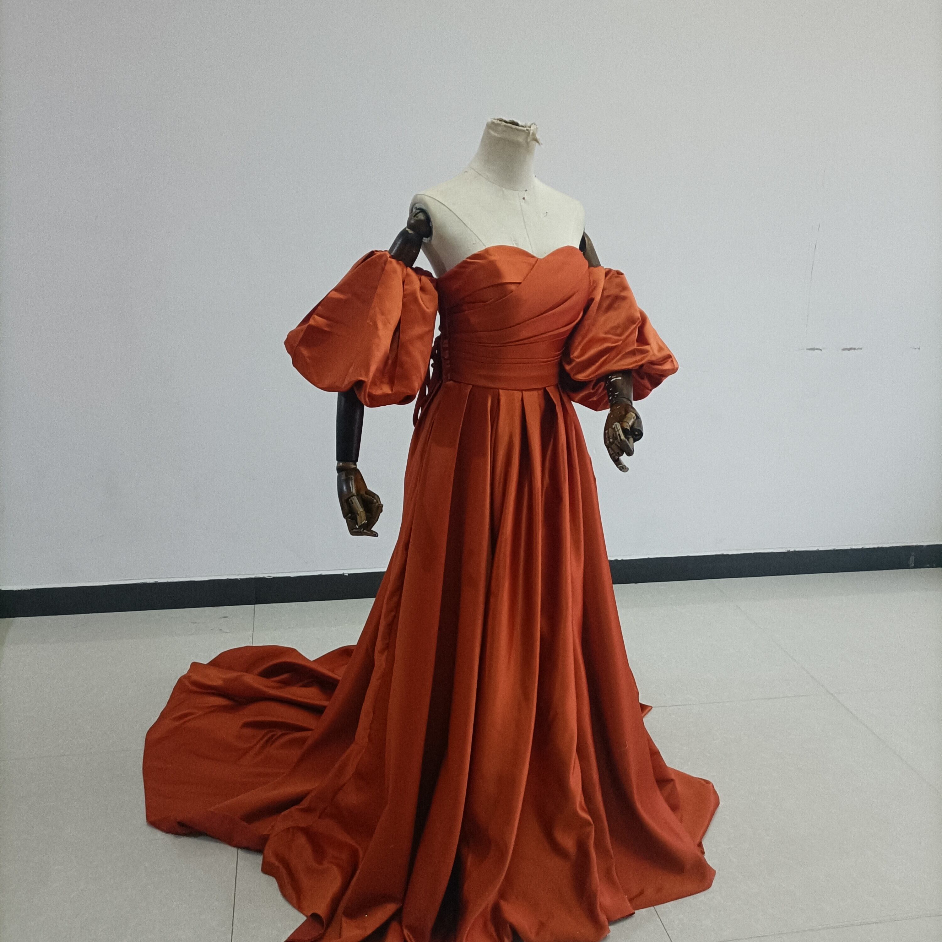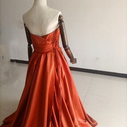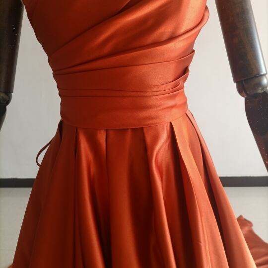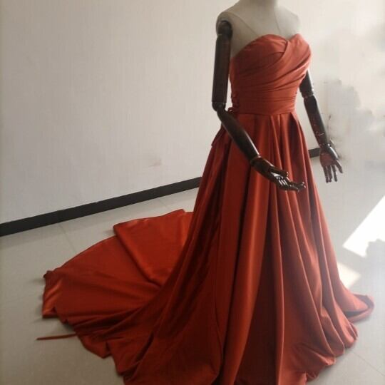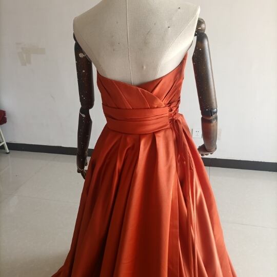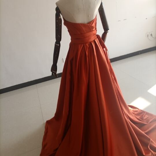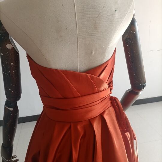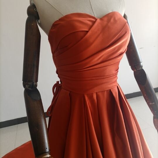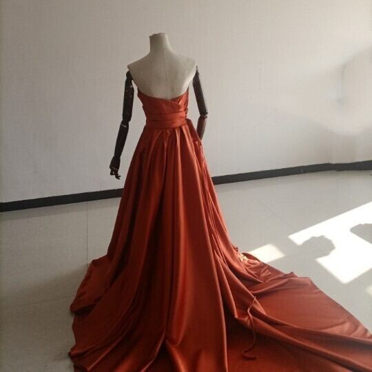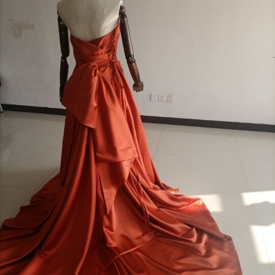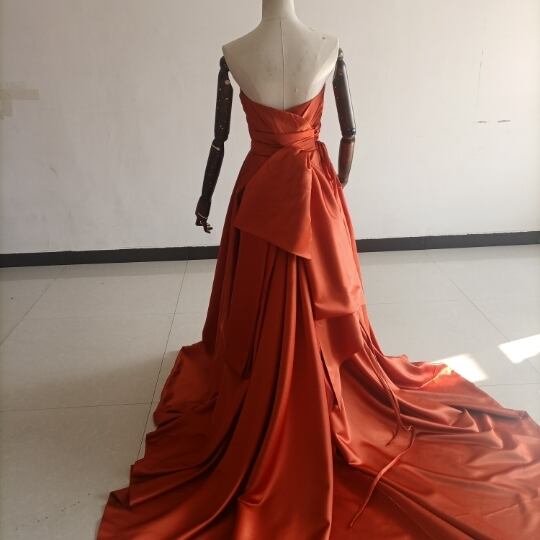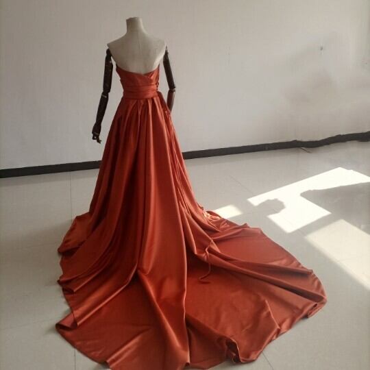 送料無料!人気上昇!パーティードレス テラコッタ色 テラコッタ ベアトップ 華やかなトレーン中にミディドレス含み/結婚式