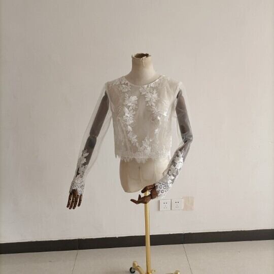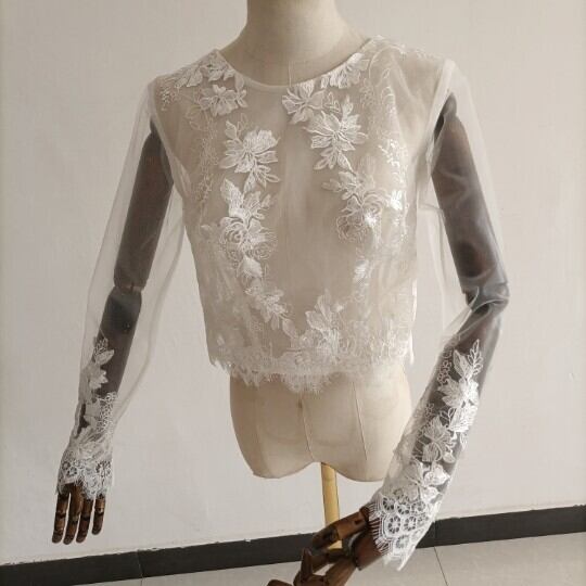 送料無料!ウエディングドレス レース ボレロ トップスのみ アイボリー 長袖 結婚式/披露宴 インナーブラウス