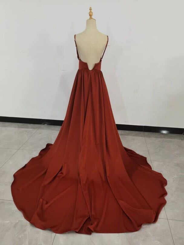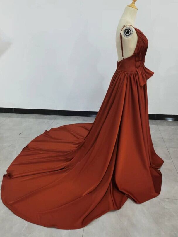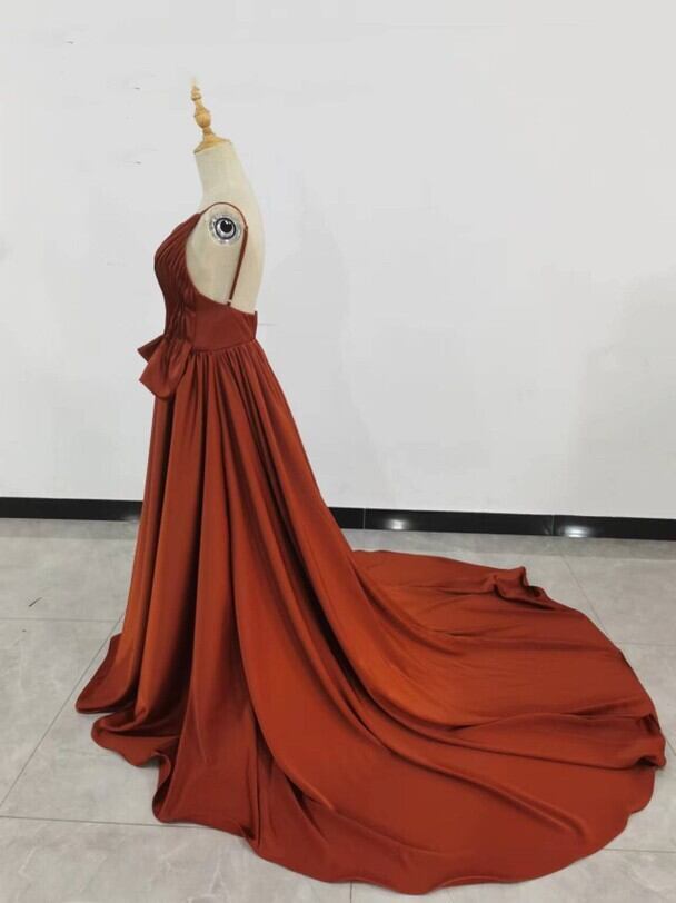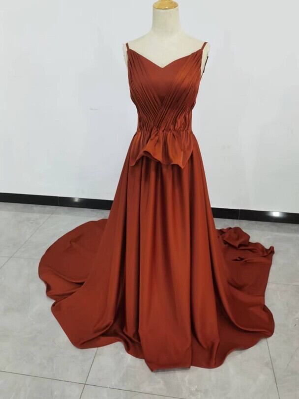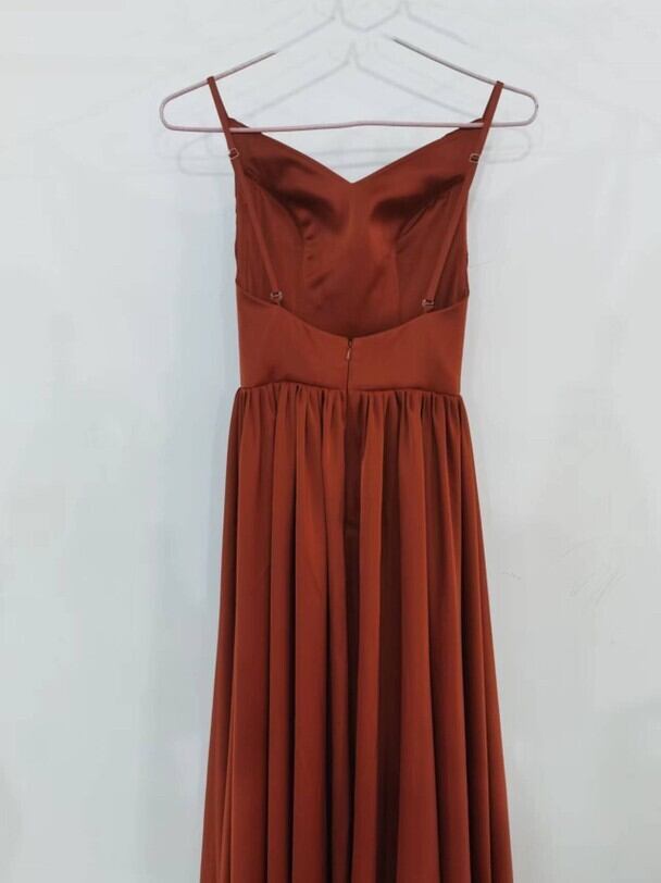 送料無料!高品質!二次会/前撮り テラコッタ色 背中見せ パーティードレス  カラードレス ロケ撮