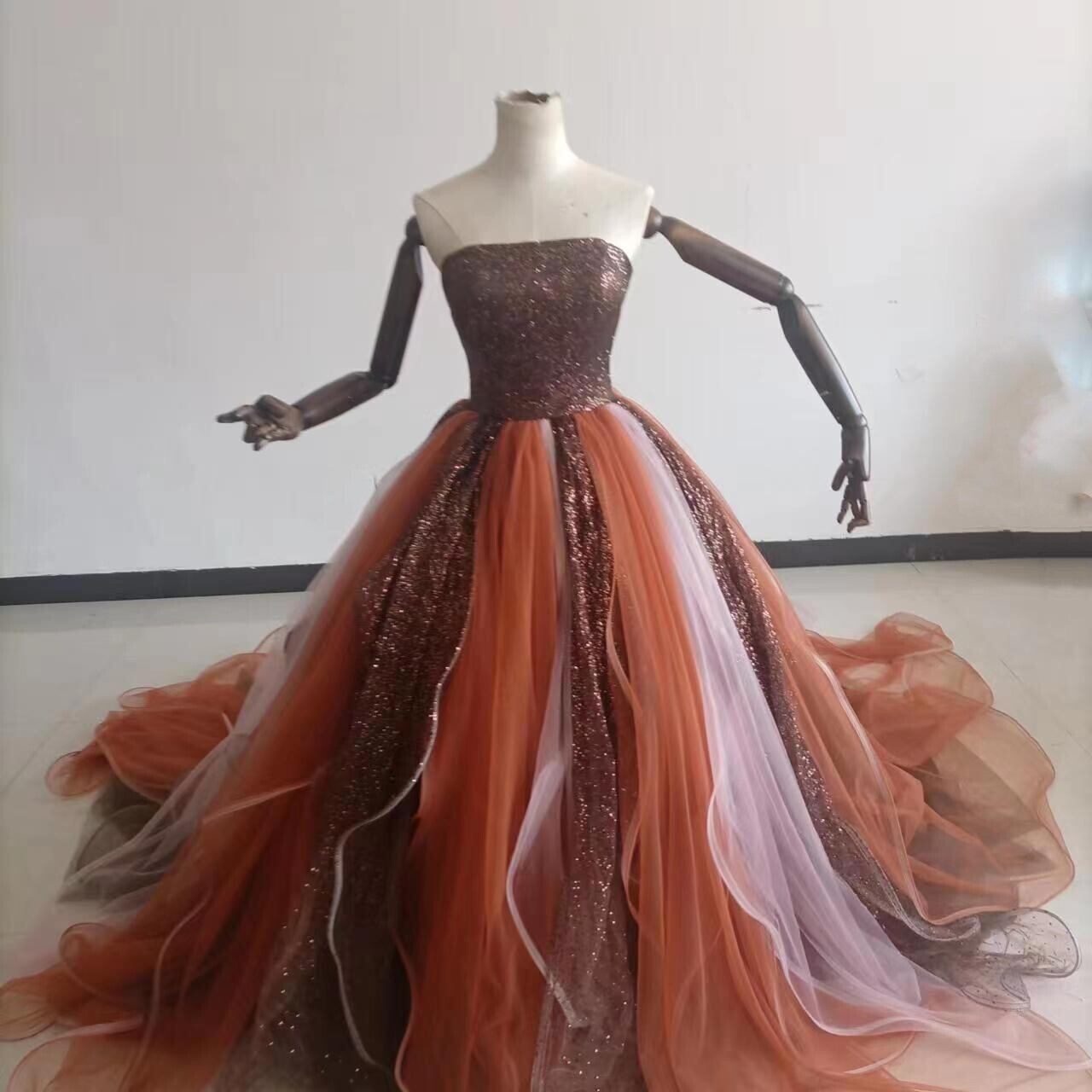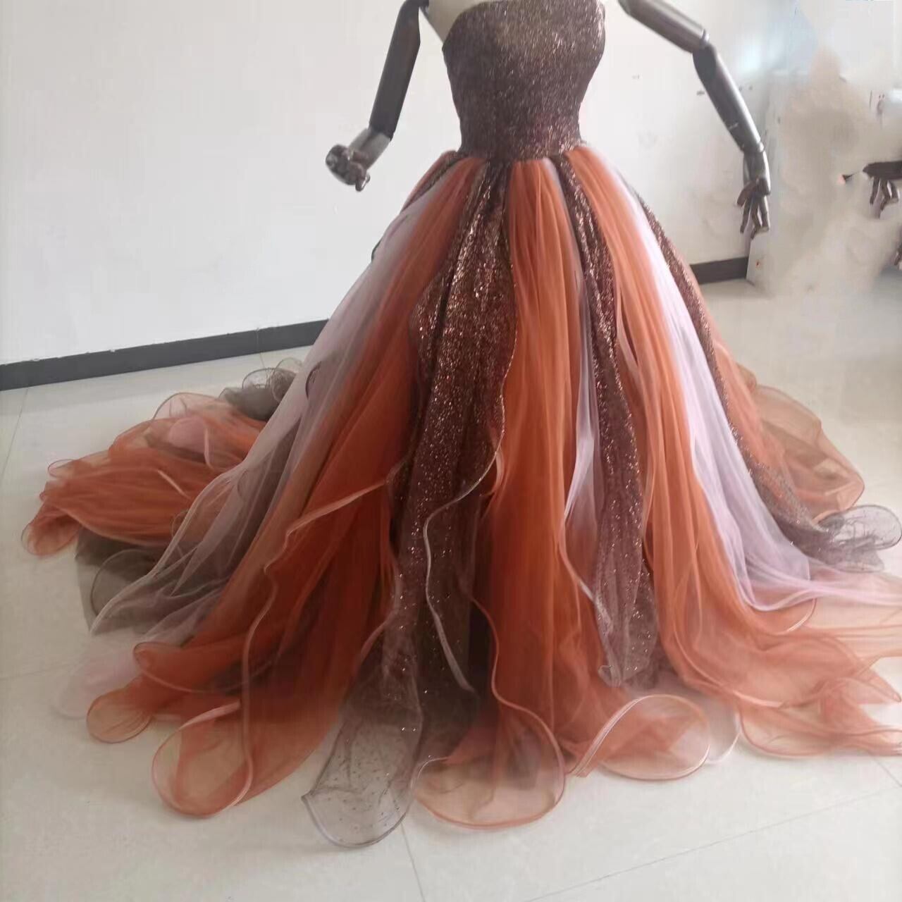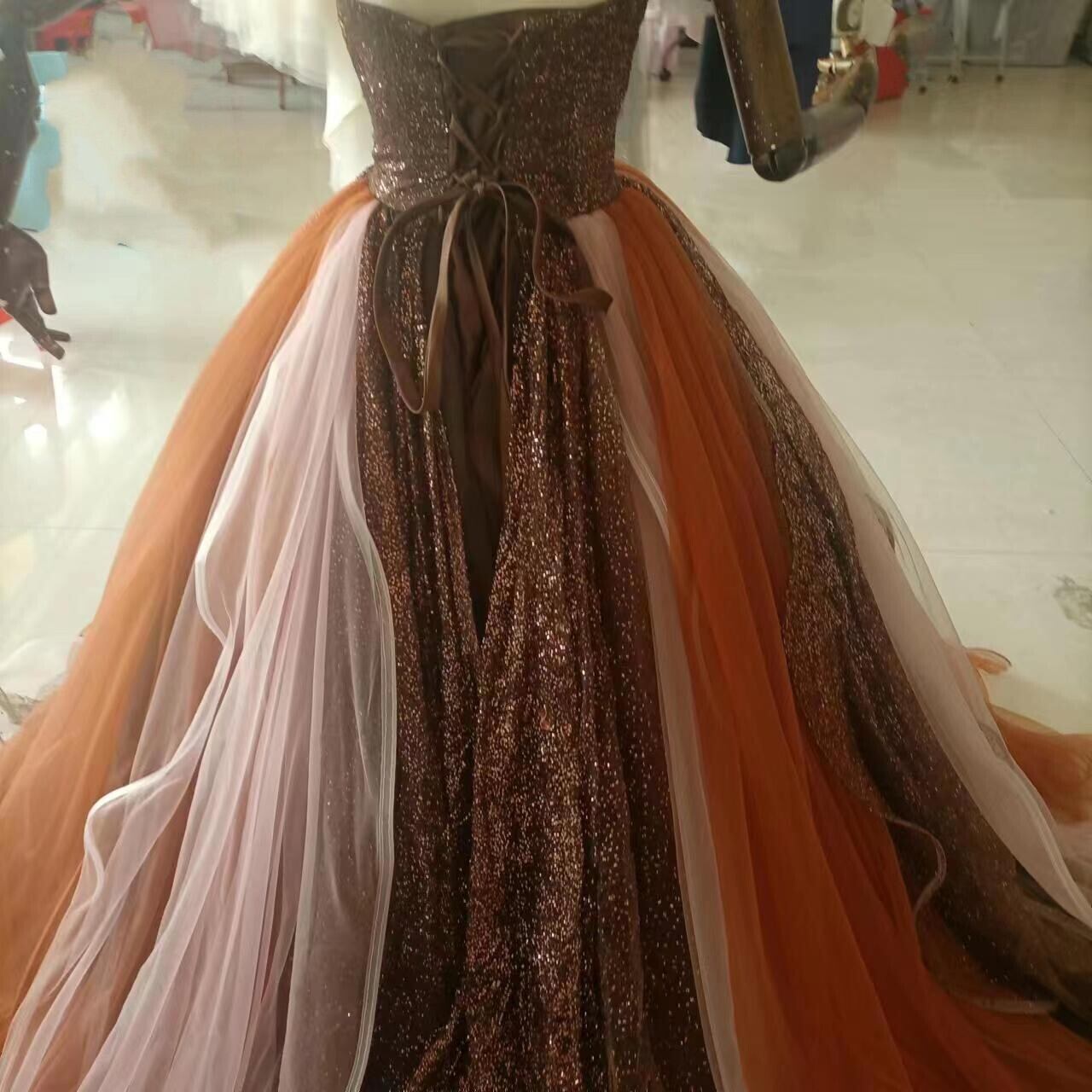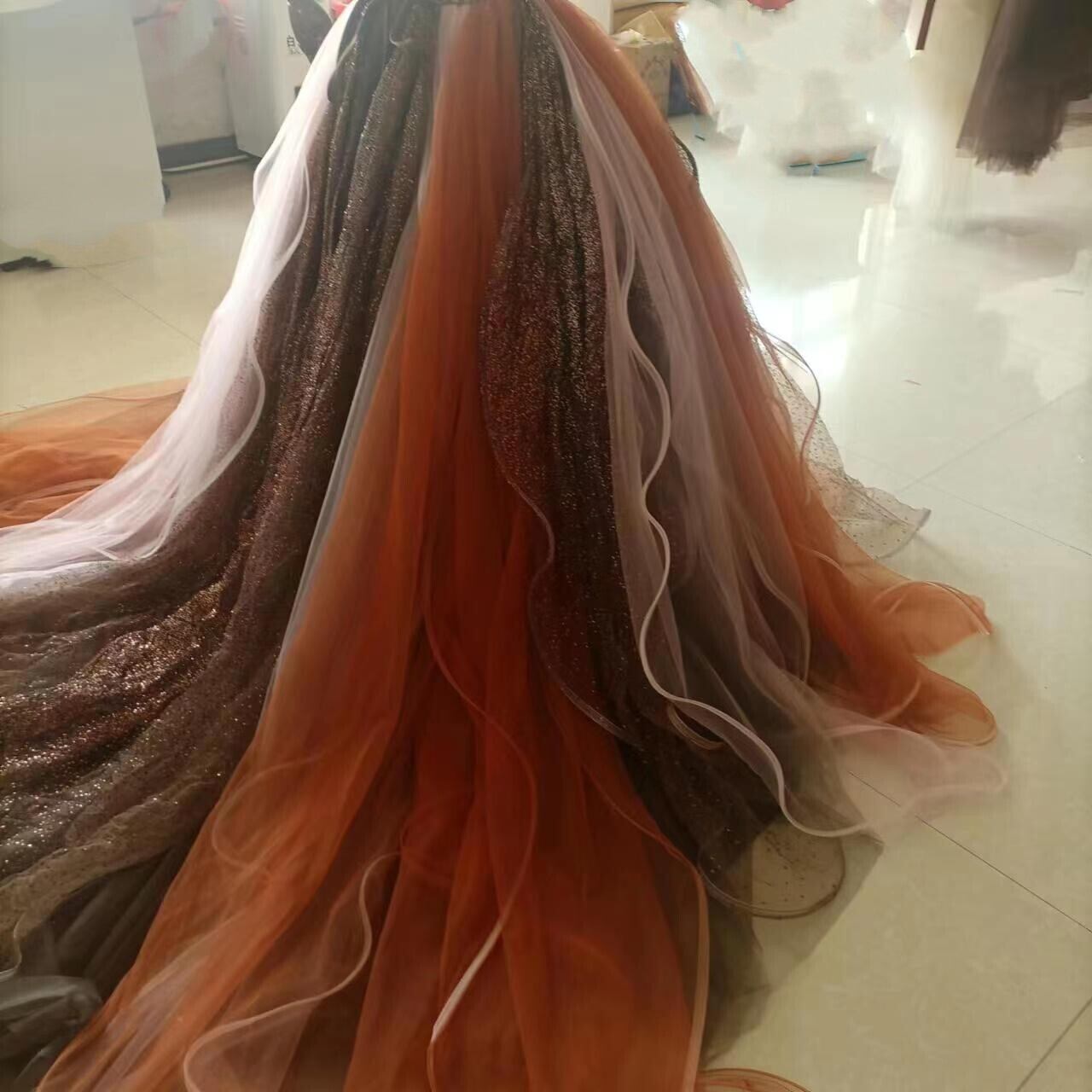 送料無料! ブラウン 茶色 輝きな光彩を放つ キラキラチュールカラードレス 可愛い 編み上げ プリンセスドレスオーバード