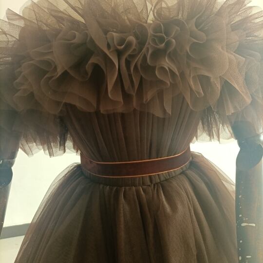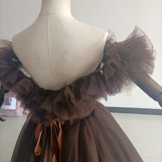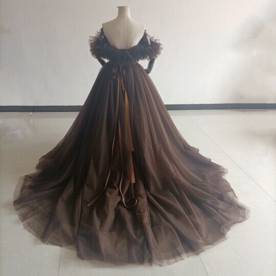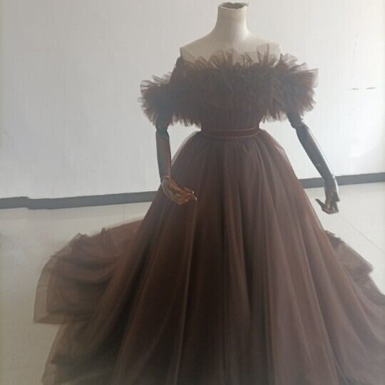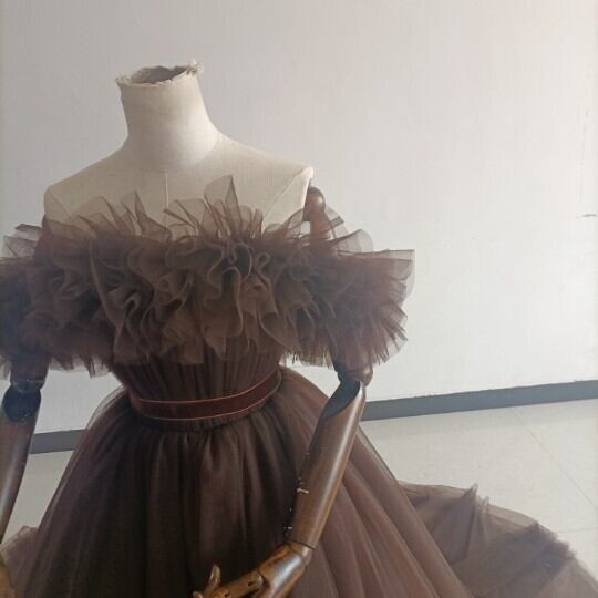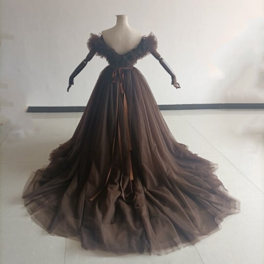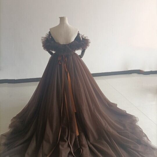 高品質!コーヒーのカラードレストレーン 取り外しオフショルダー サッシュベル