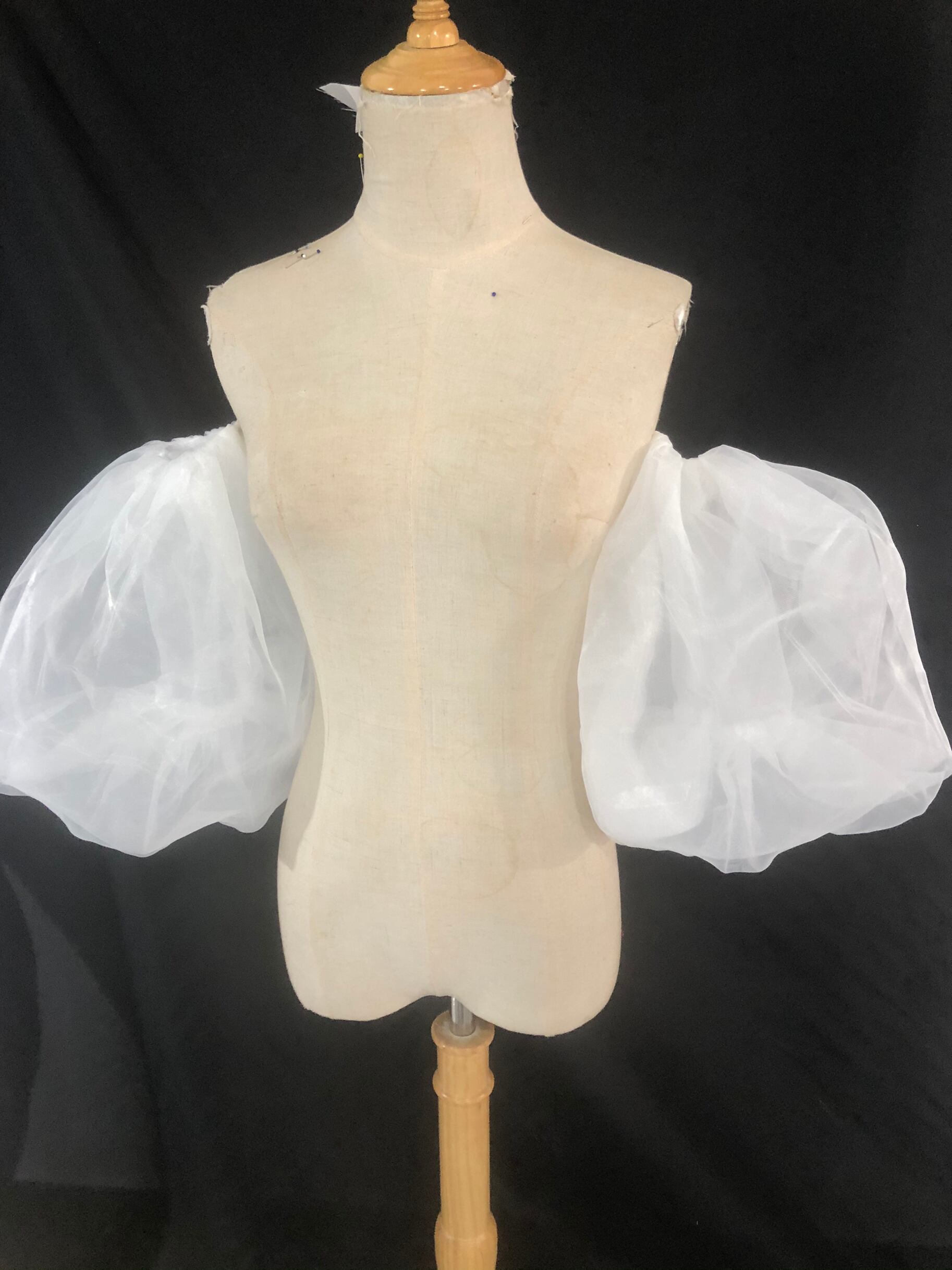 送料無料!パフスリーブ二重(サテン+オーガンジー)取り外し袖 ホワイト ショルダーの付け袖 三角形パフスリーブ ドレスア