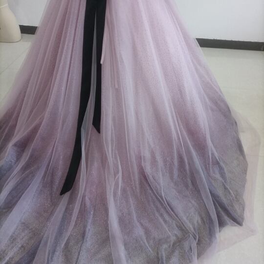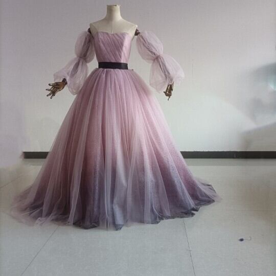送料無料! ブラウン 輝きな光彩を放つ キラキラチュールカラードレス 可愛い 編み上げ プリンセスドレスオーバード