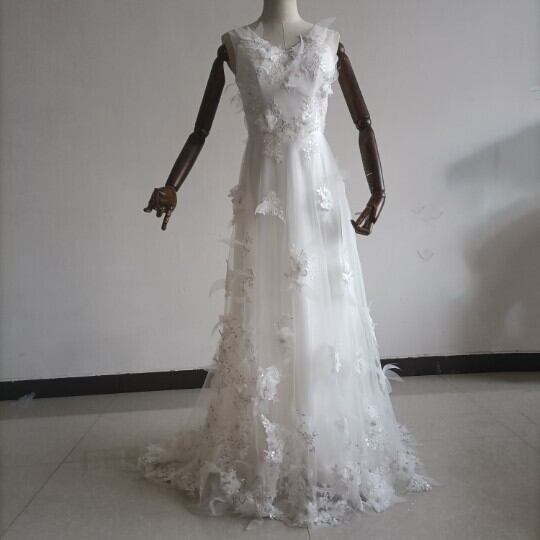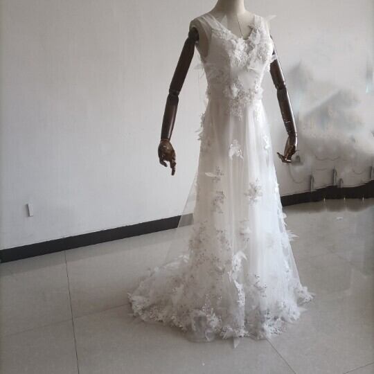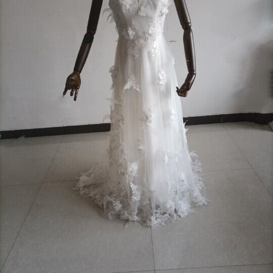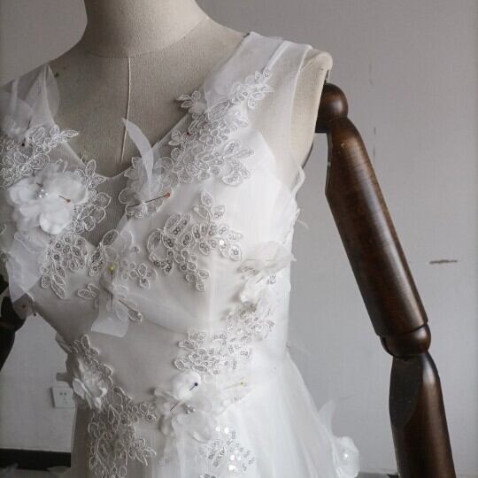 送料無料!高品質! パーティードレス ホワイト 高級刺繍 くるみボタン 床付く 深Vネック 二次会