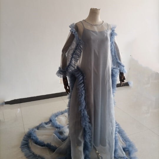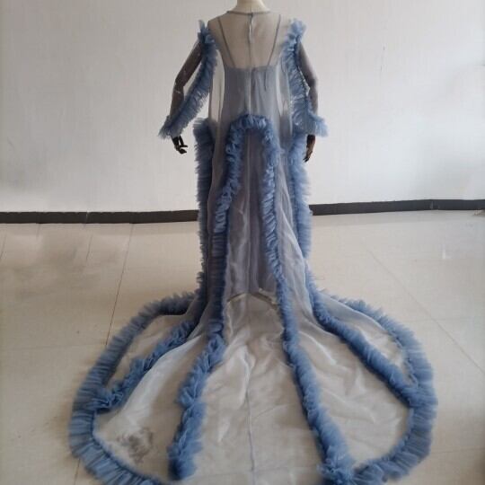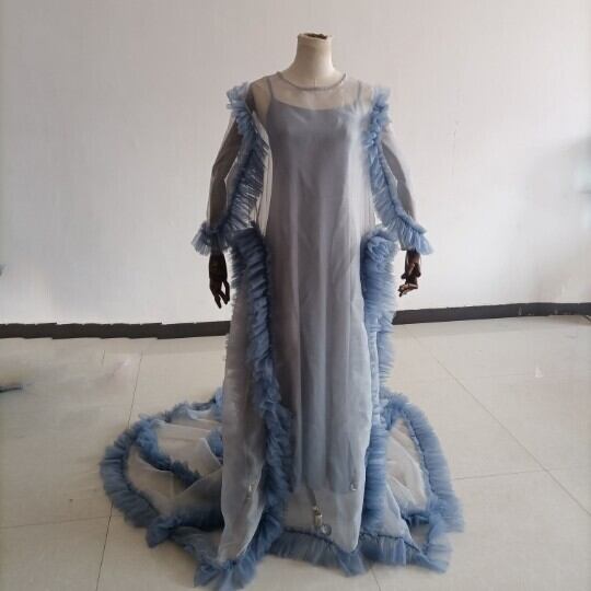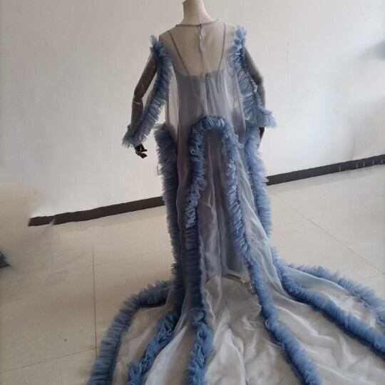 送料無料! 爽やかで優しいブルーオンショルダードレス+ ケープ風ドレス 抜群のおしゃれ見え 前撮り結婚式