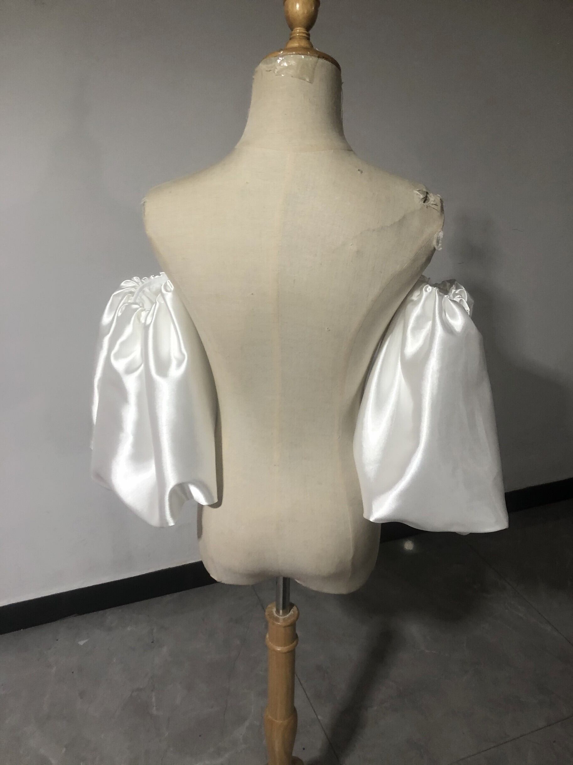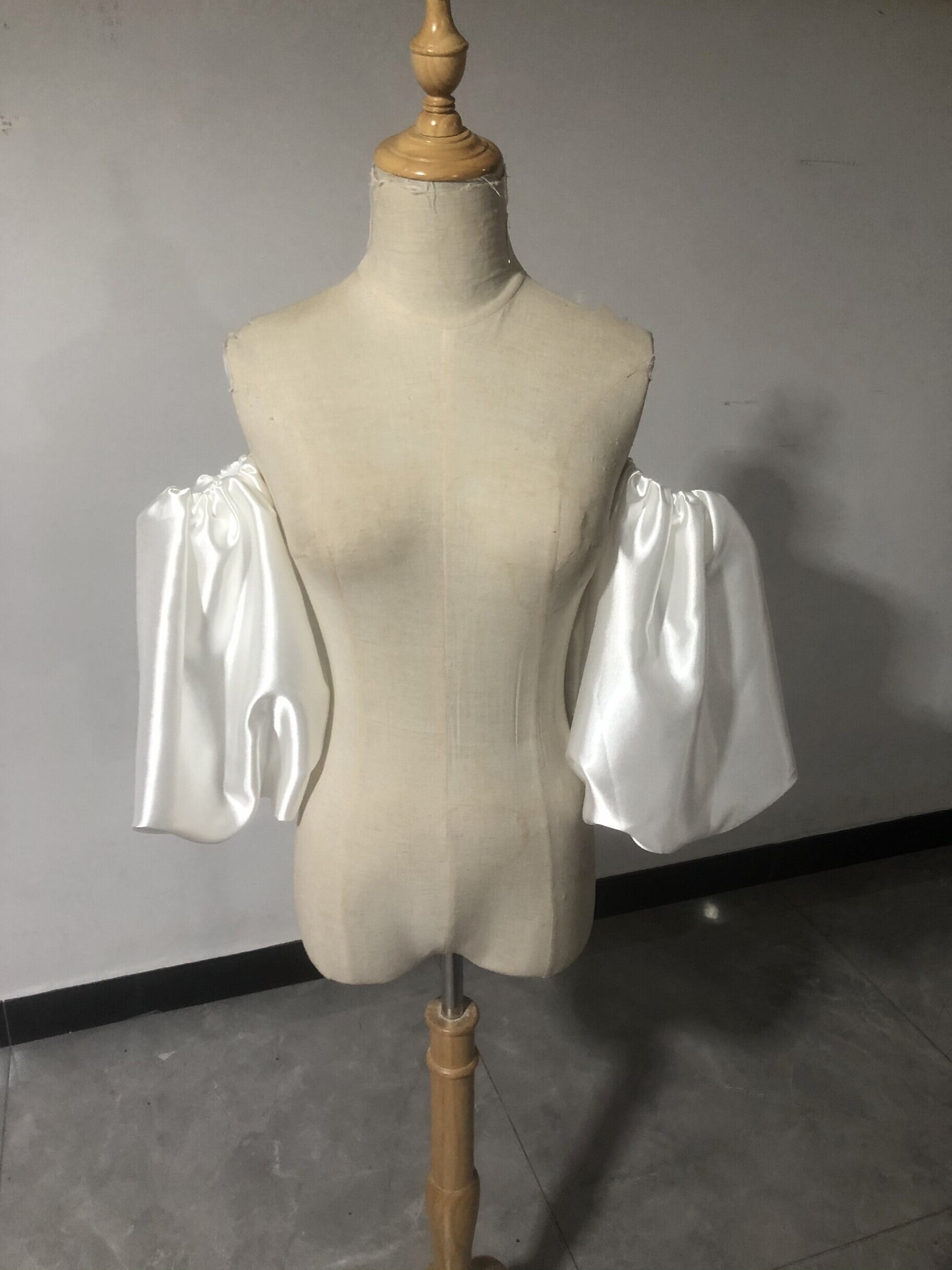 送料無料!高級サテン 取り外し袖 オフホワイト ショルダーの付け袖 パフスリーブ オーダー可能 二の腕を隠せるお袖