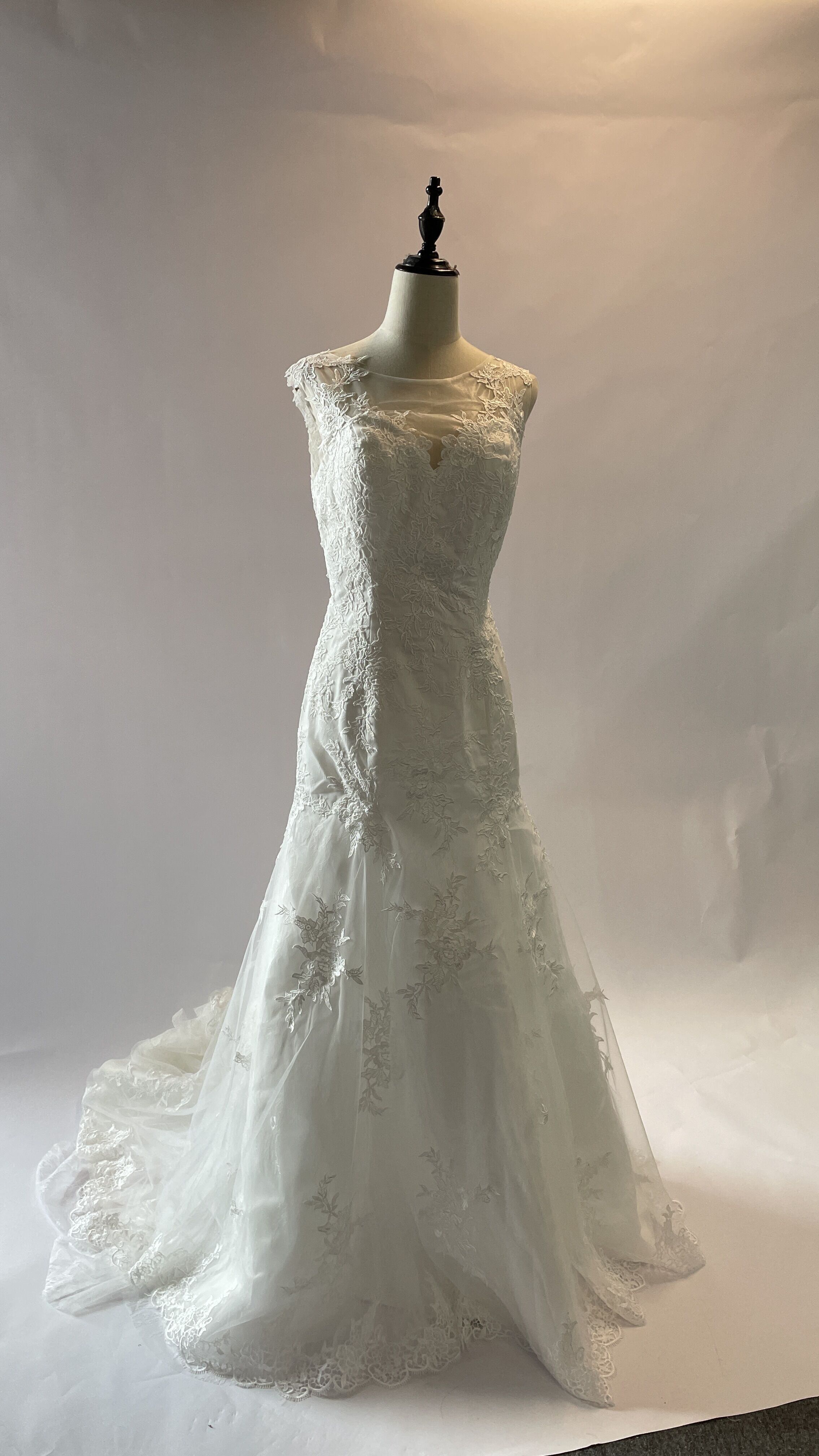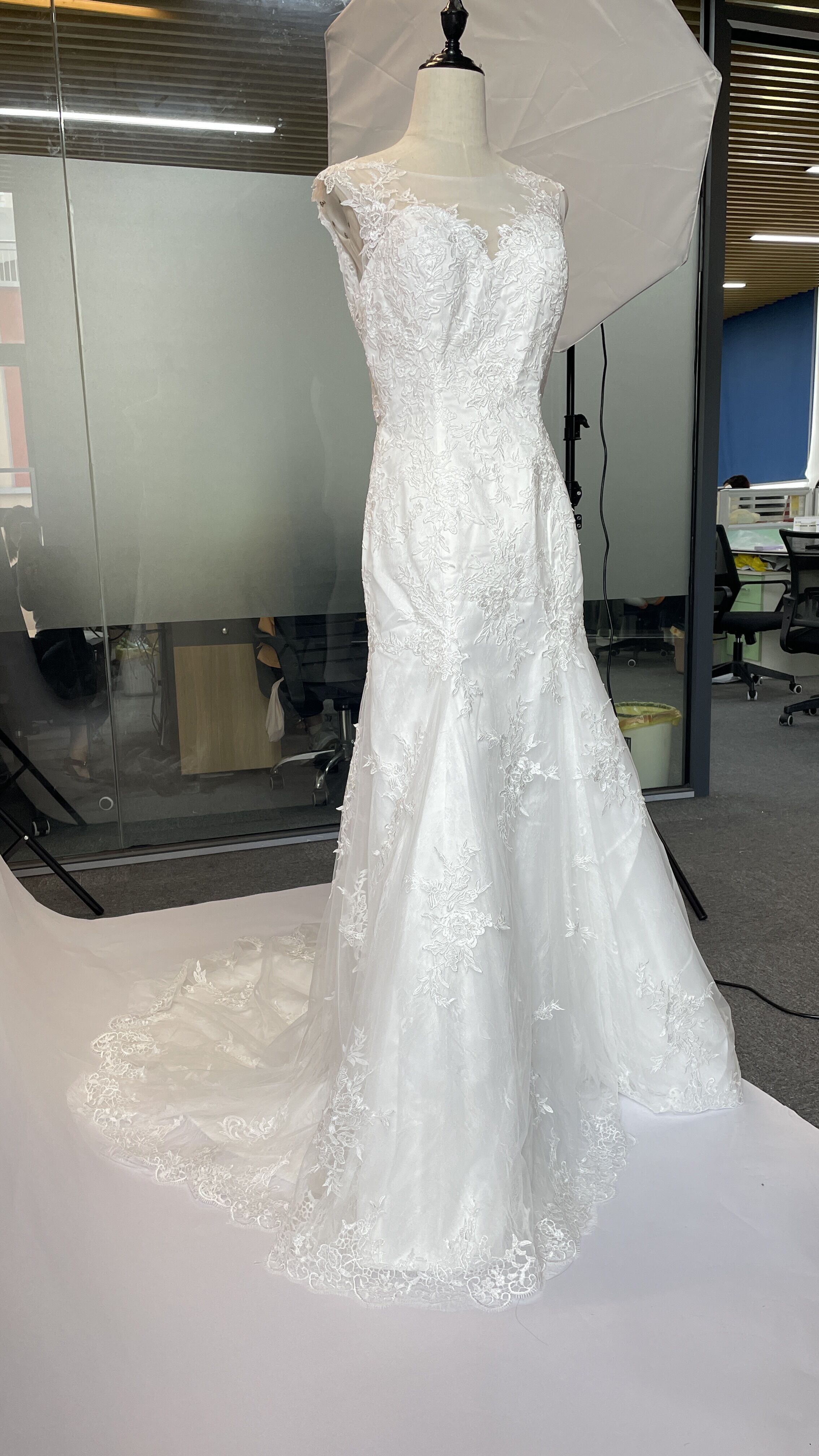 送料無料!ウエディングドレス ホワイト 3D立体レース刺繍 深Vネックド マーメイドライン トレーン エレガント ロングドレス