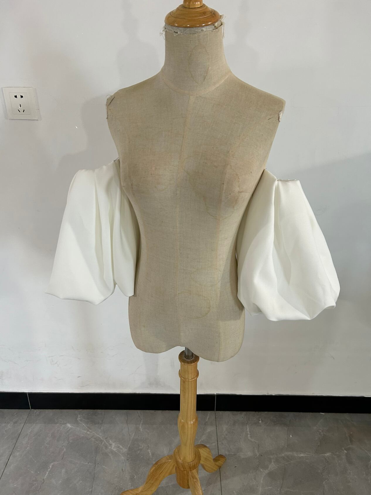 送料無料!取り外し袖 ホワイト ショルダーの付け袖 三角形パフスリーブ ドレスアレンジ ウエディング お色直し クレープ