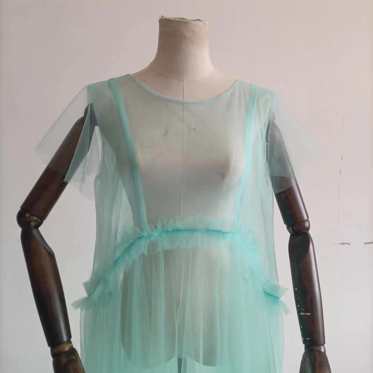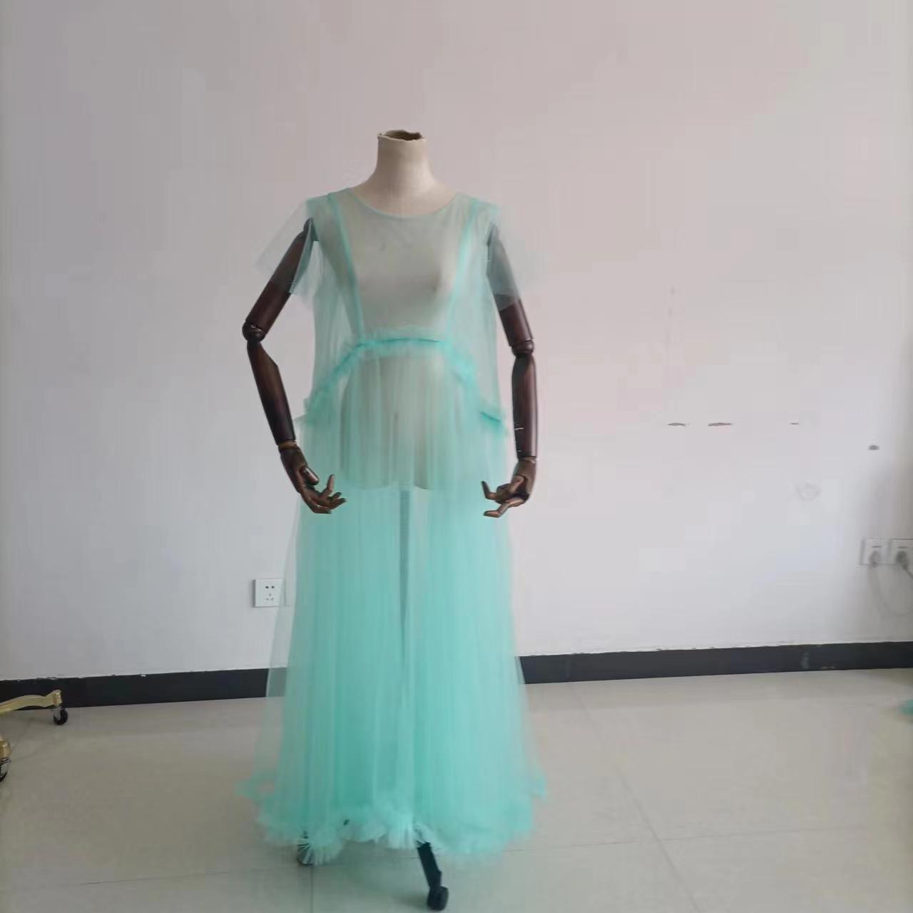 送料無料! 高品質! ペールグリーン妊婦ドレス マタニティ 写真撮影 シースルー ワンピース ソフトチュール オーダーメイド