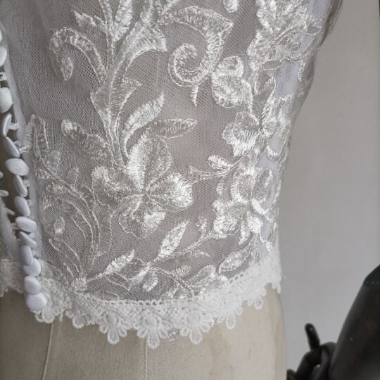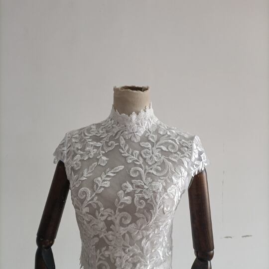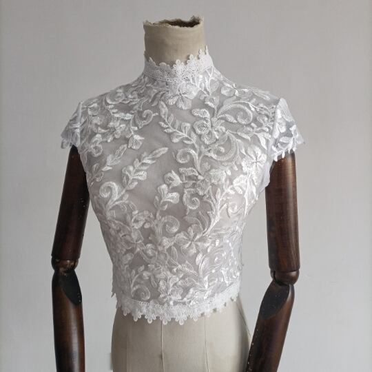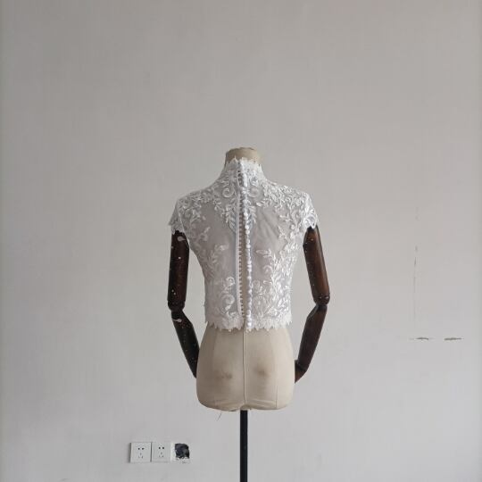 送料無料! 上品なくるみボタン ハイネック  レースボレロ トップス ウエディングドレス