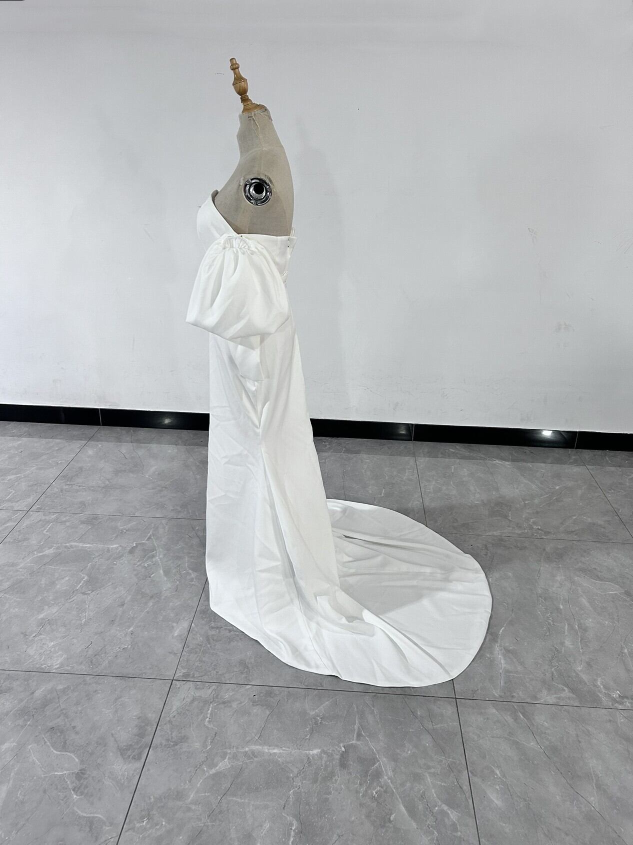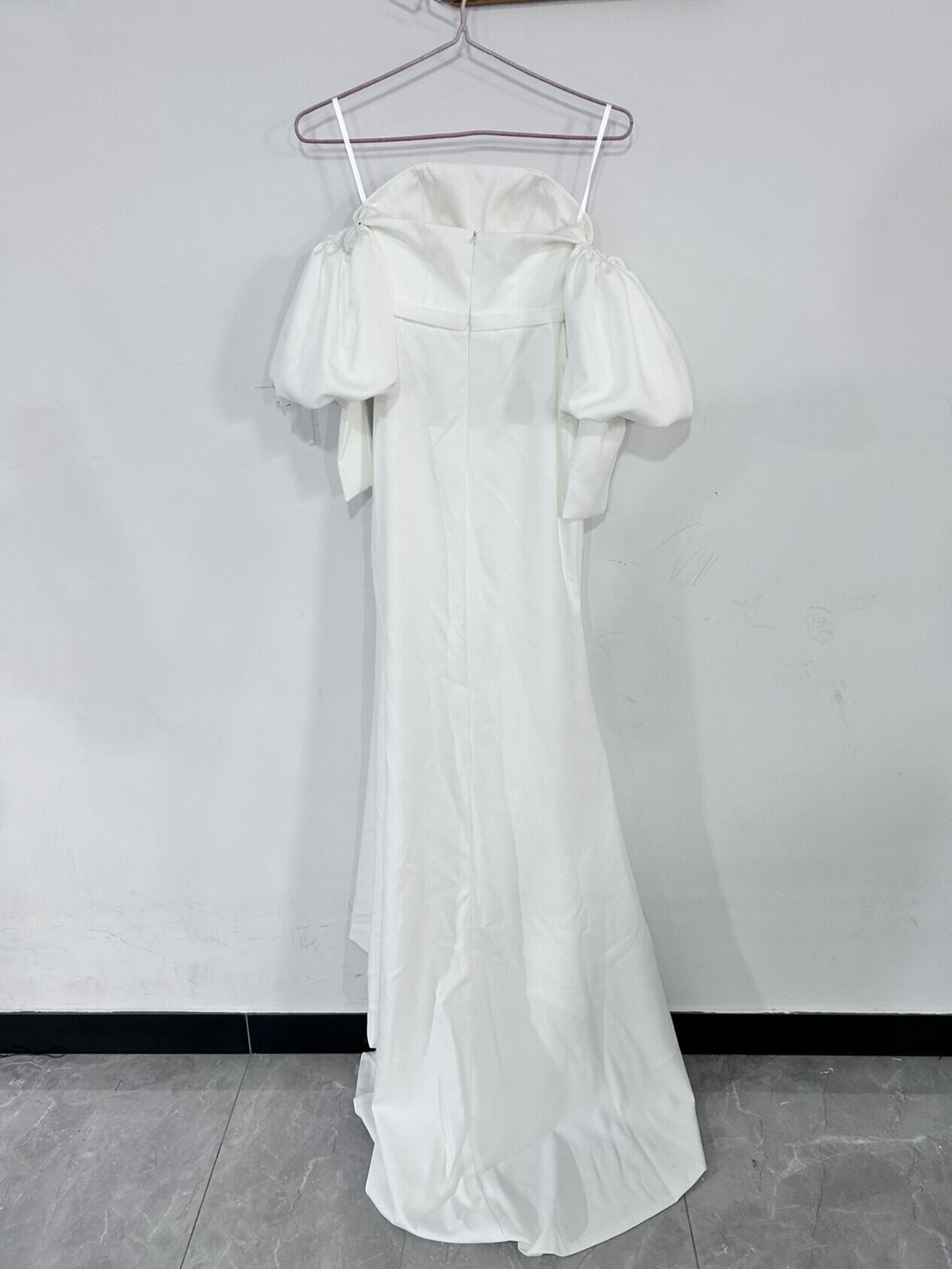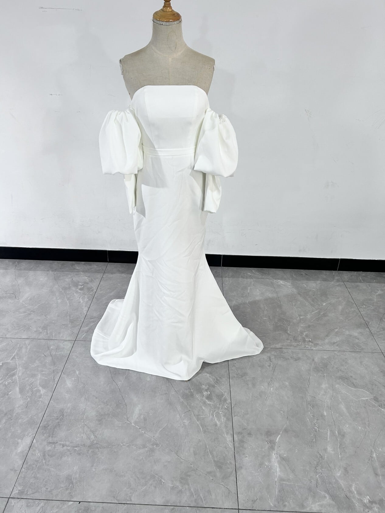 送料無料! スレンダーライン パフスリーブ オフショルダー ウェディングドレス ベアトップ お呼ばれ/二次会 オーダーメ