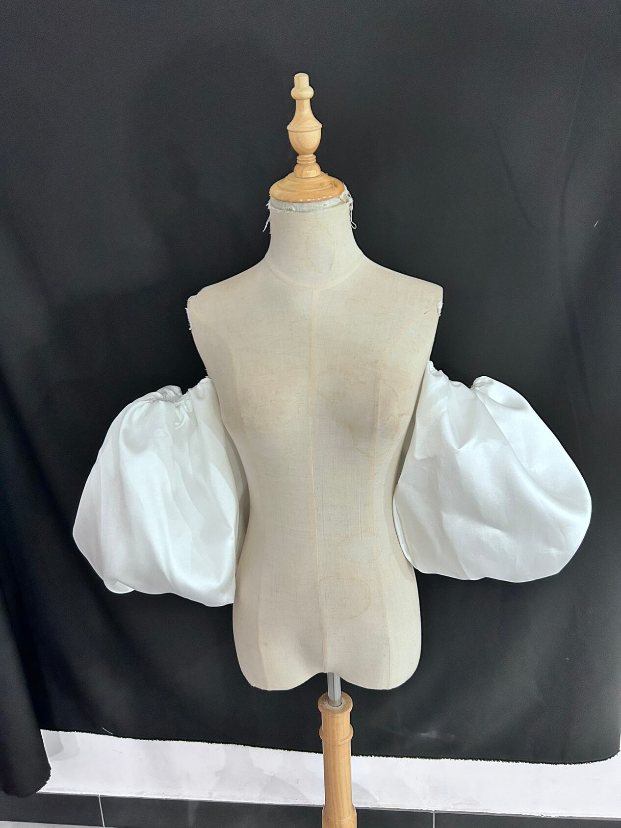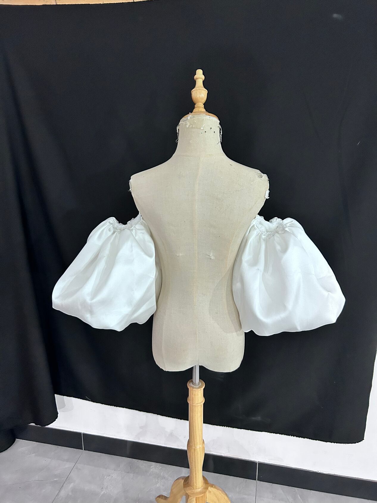 送料無料!高級サテン 取り外し袖 オフホワイト ショルダーの付け袖 パフスリーブ オーダー可能 二の腕を隠せるお袖