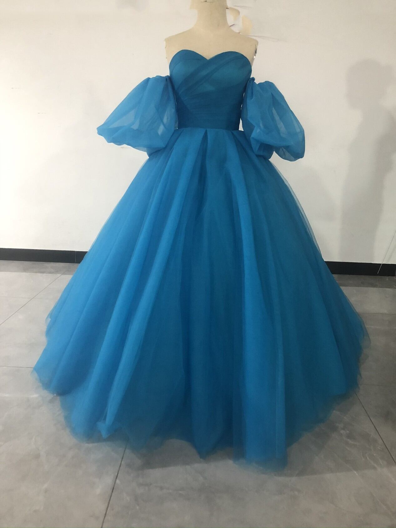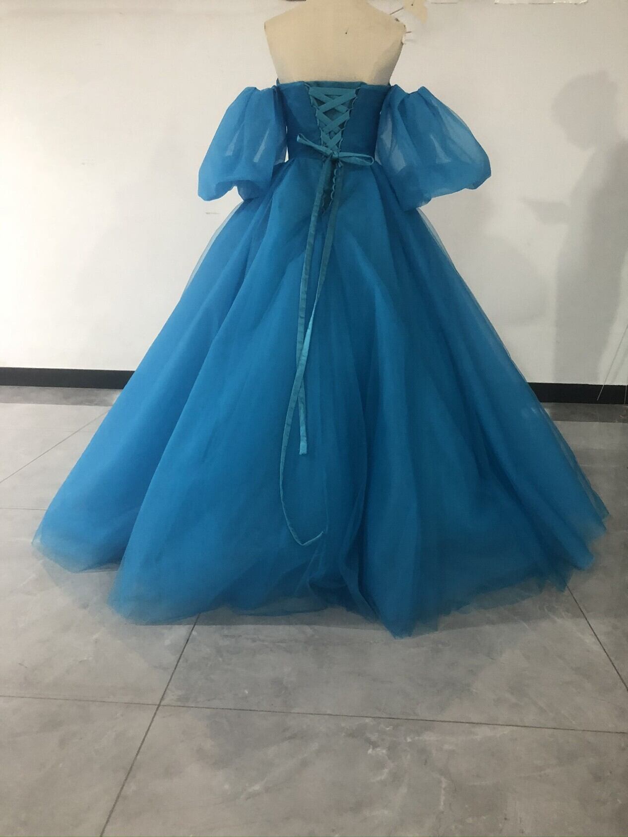 送料無料!人気上昇!ピーコックグリーンカラードレス パーティードレス ベアトップ 取り外し 姫袖 /結婚式/披露