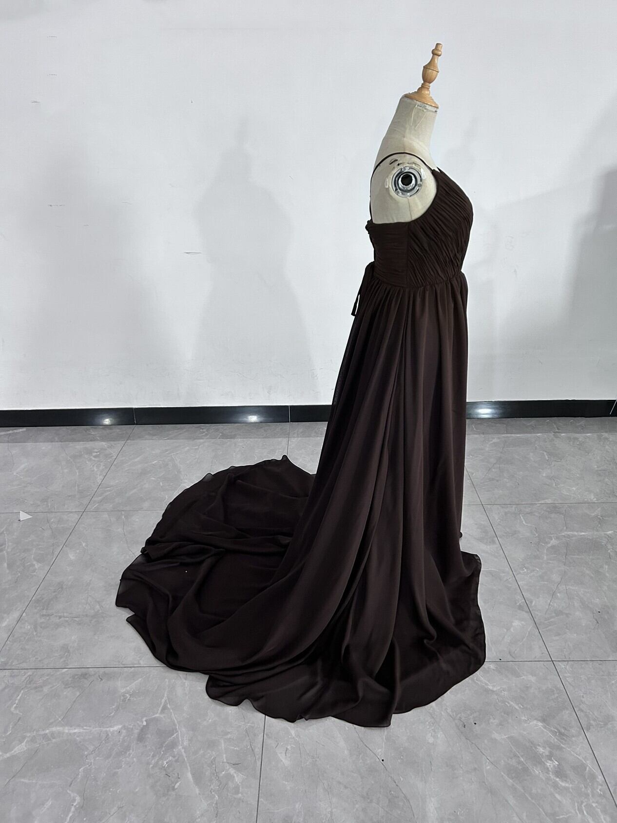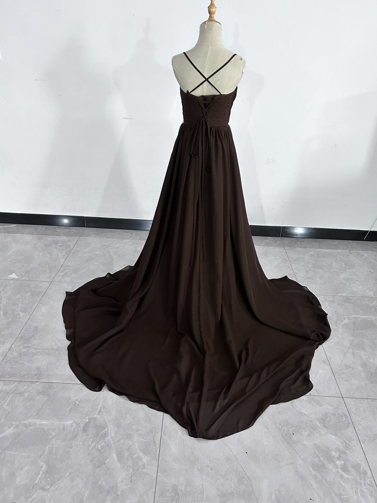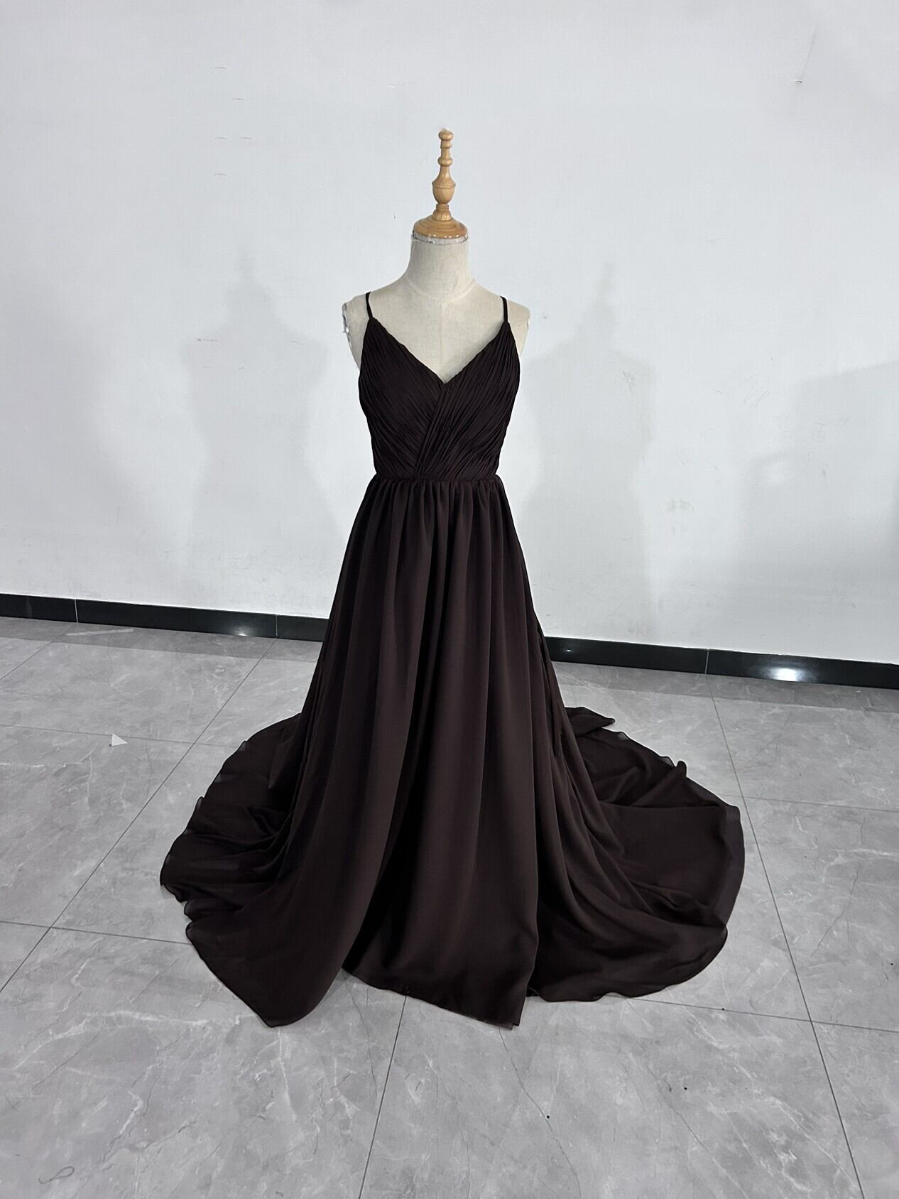 送料無料!黒茶色 カラードレス Vネックドレス キャミソール ロングトレーン パーティードレス