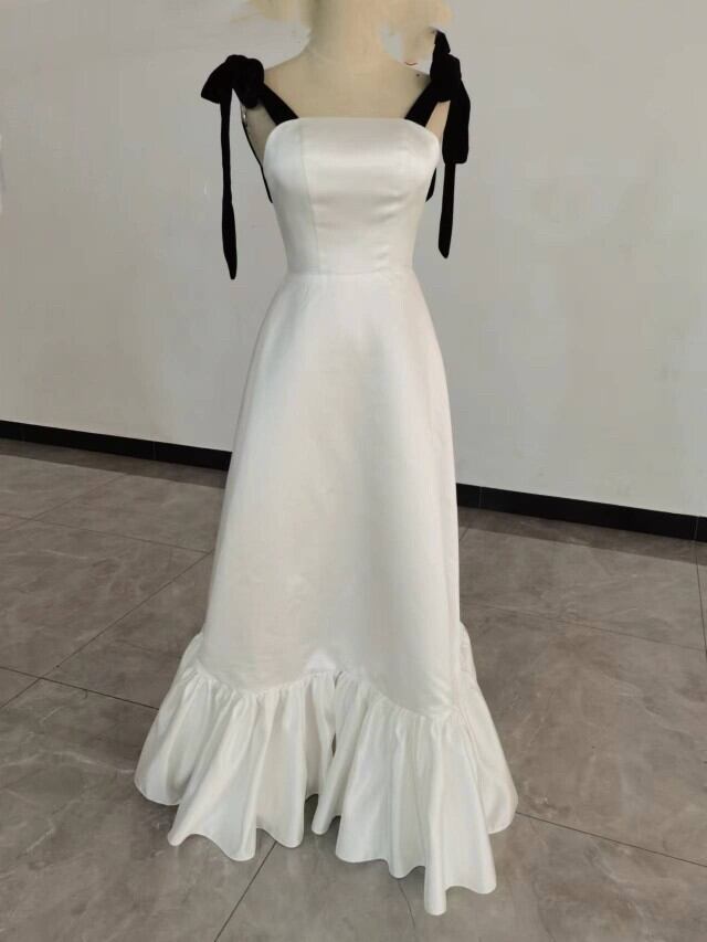 美品!ウエディングドレス ラッフルフリル オンショルダードレス リボン 背中見せ 前撮り結婚式 2次会
