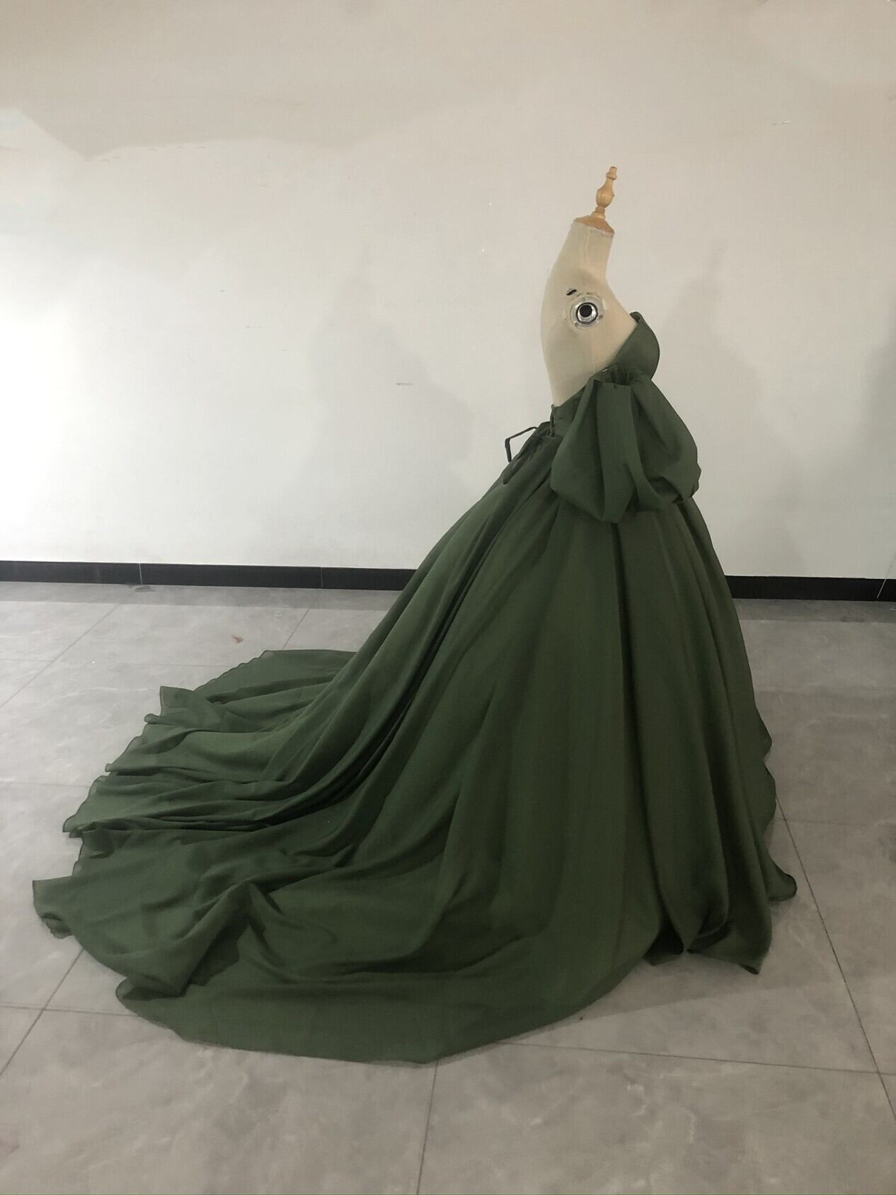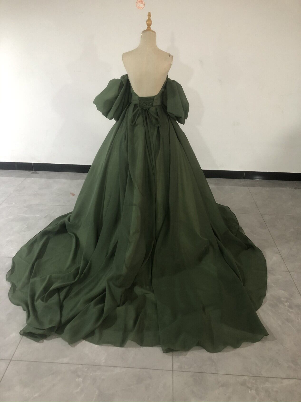 人気上昇!深めな緑 パーティードレス ベアトップ 華やかなトレーン/結婚式/披露宴