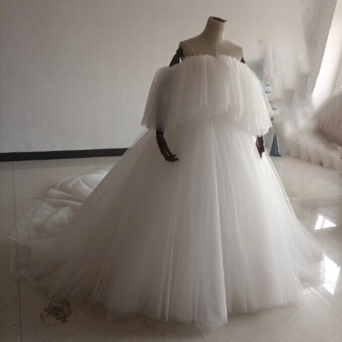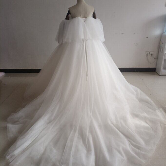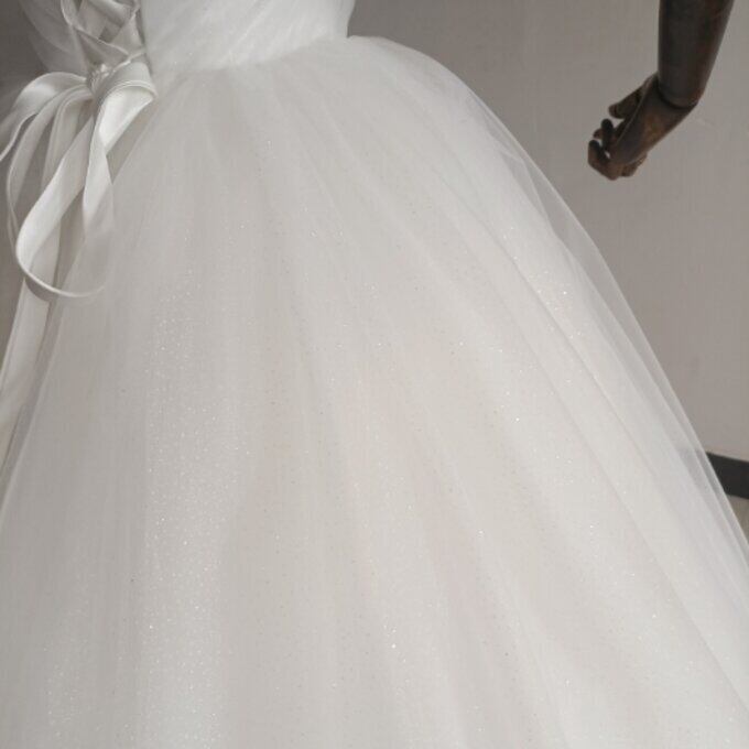 エレガント オフホワイトドレス 取り外しオフショルダー ベアトップ キラキラチュール 結婚式/披露宴