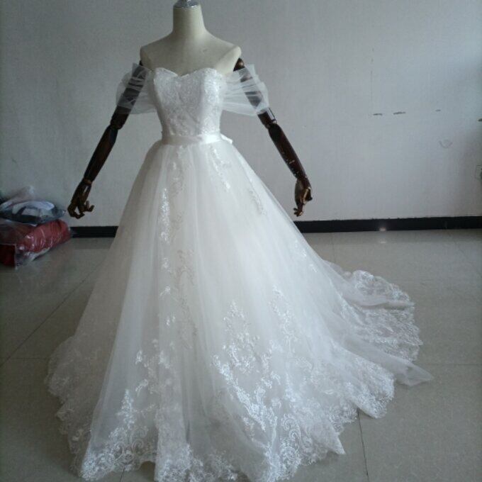 豪華!オフホワイト ドレス 2waysウエディングドレス オフショル 取り外しオーバースカート付き マーメイドライン